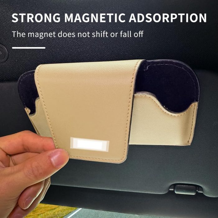Strong Magnetic Car Glasses Holder, Soft Leather Glasses Holder for Car Visor, Universal Glasses Holder for Car Interior Accessories for Car, Truck, SUV, Camper (Beige)