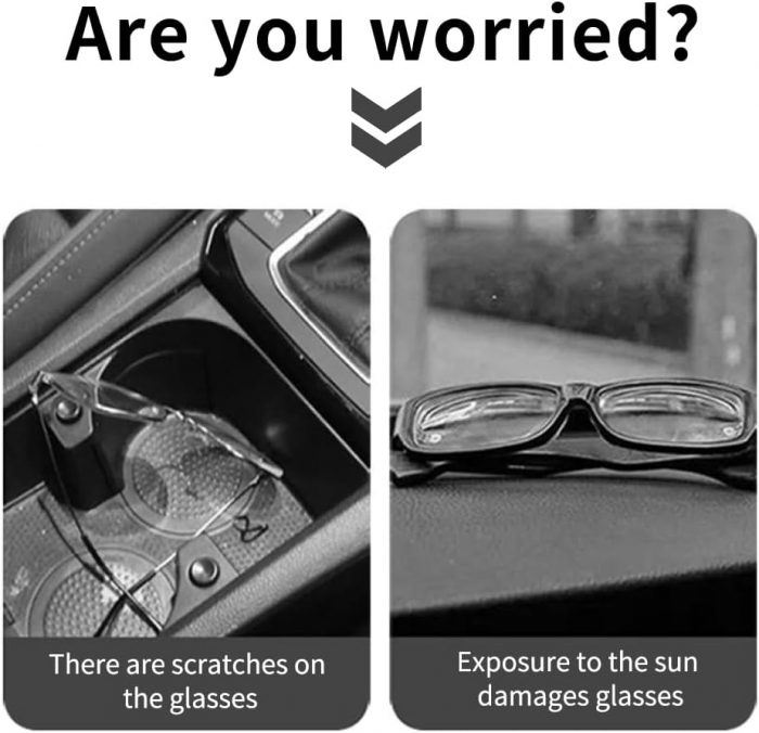IDEAL HOME FOR GLASSES: If your car is equipped with sunglasses for a long time, you will find that it looks unsafe or convenient in any position of the car. As the car continues to hit and drive, the surface of the beautiful mirror will also be scratched by objects. Therefore, it is very necessary to prepare a «protective case» for your sunglasses that is within your reach!