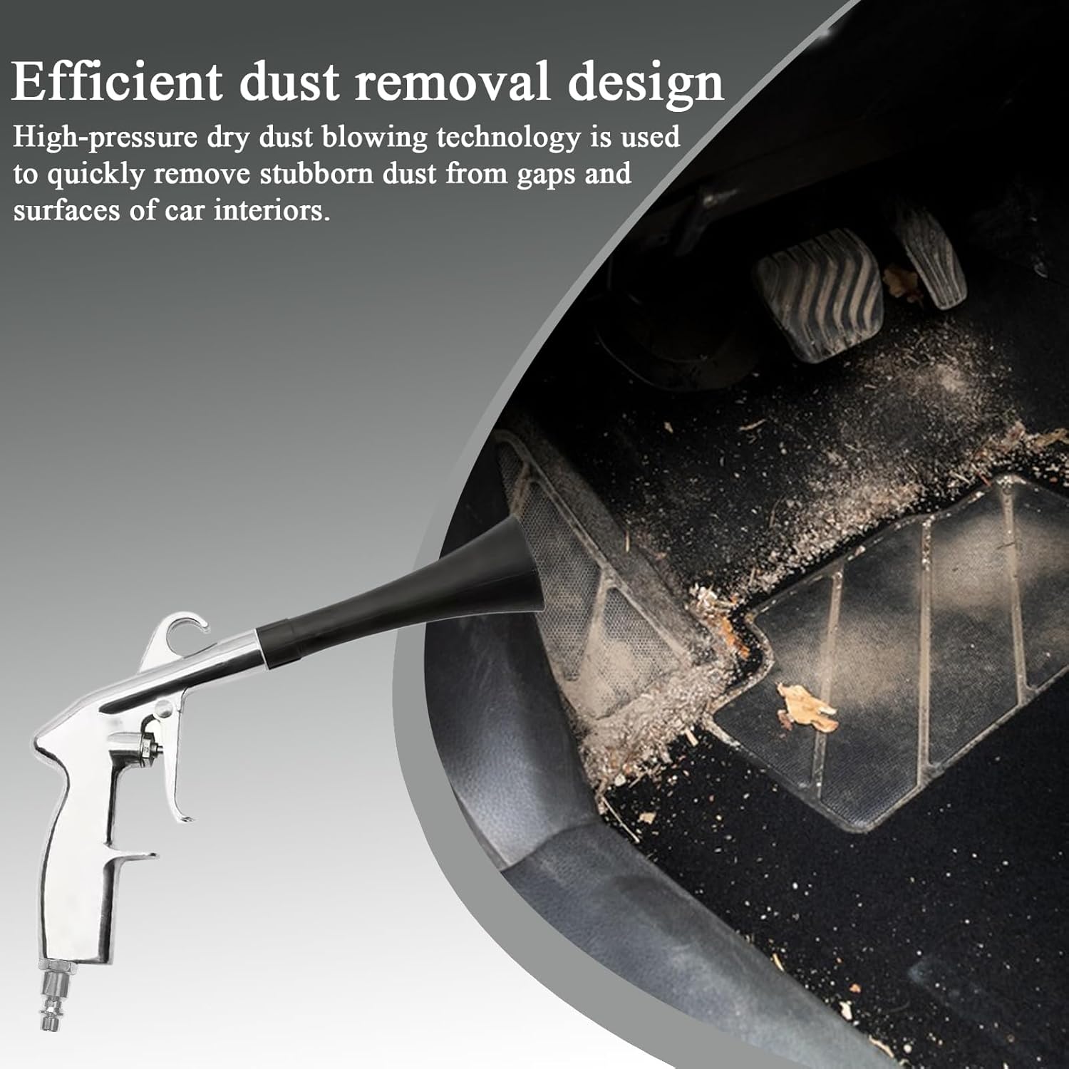 Experimente un mantenimiento automotriz sin esfuerzo con este soplador de limpieza sin contacto. Su potente energía de soplado elimina polvo, suciedad y mugre de alfombras, tapicería, tableros, compartimentos del motor y huecos de los asientos, ofreciendo una limpieza integral sin complicaciones.