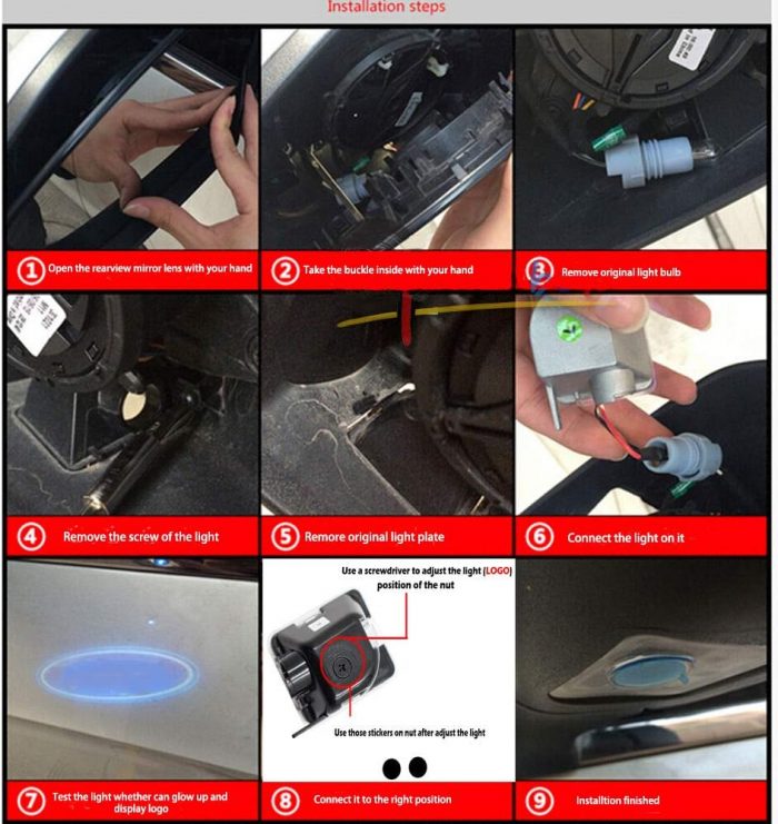 This floor lamp is the only one on the market that can be installed in its original location and does not require drilling a hole. And the projected image is the logo of the car.