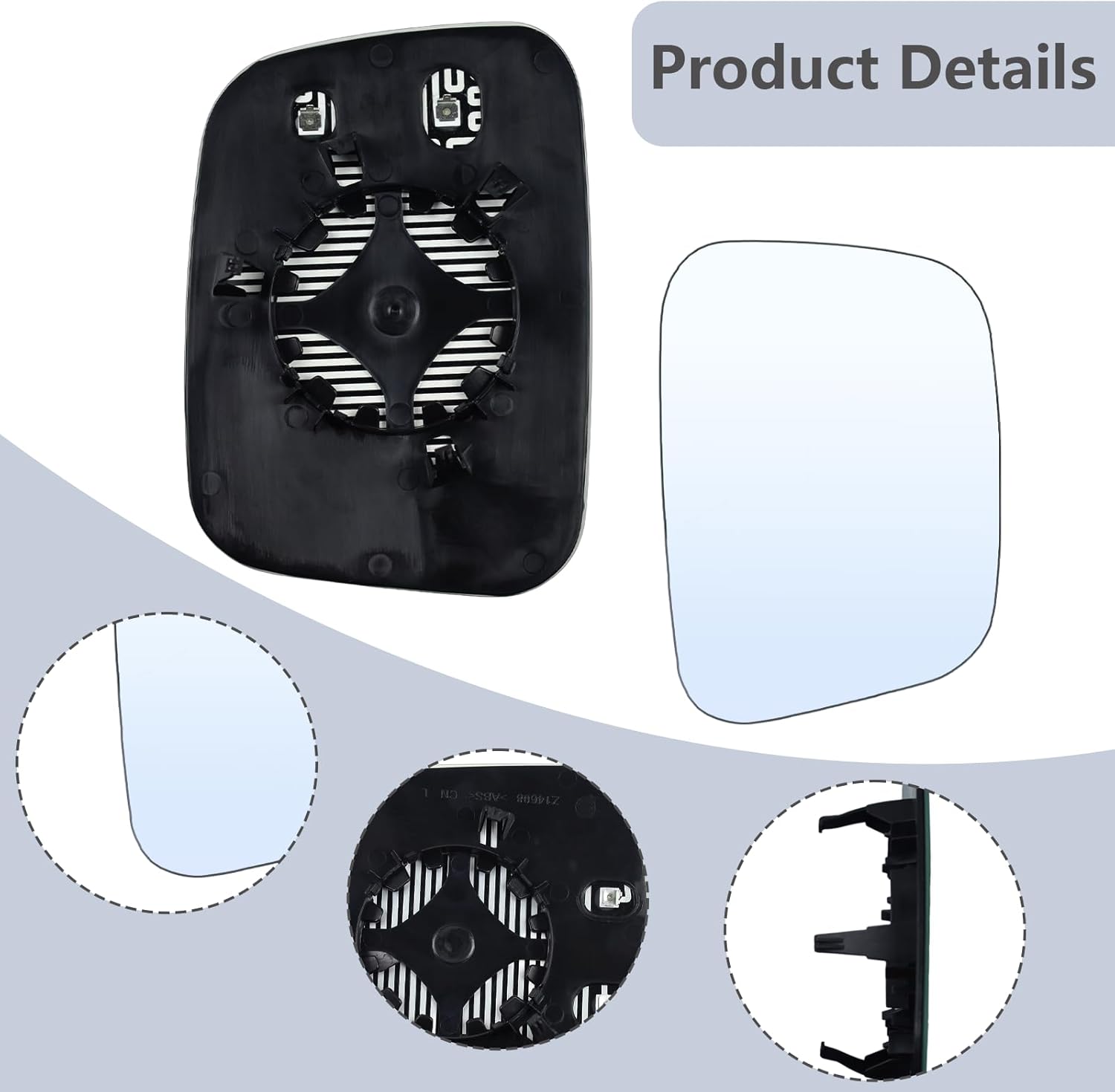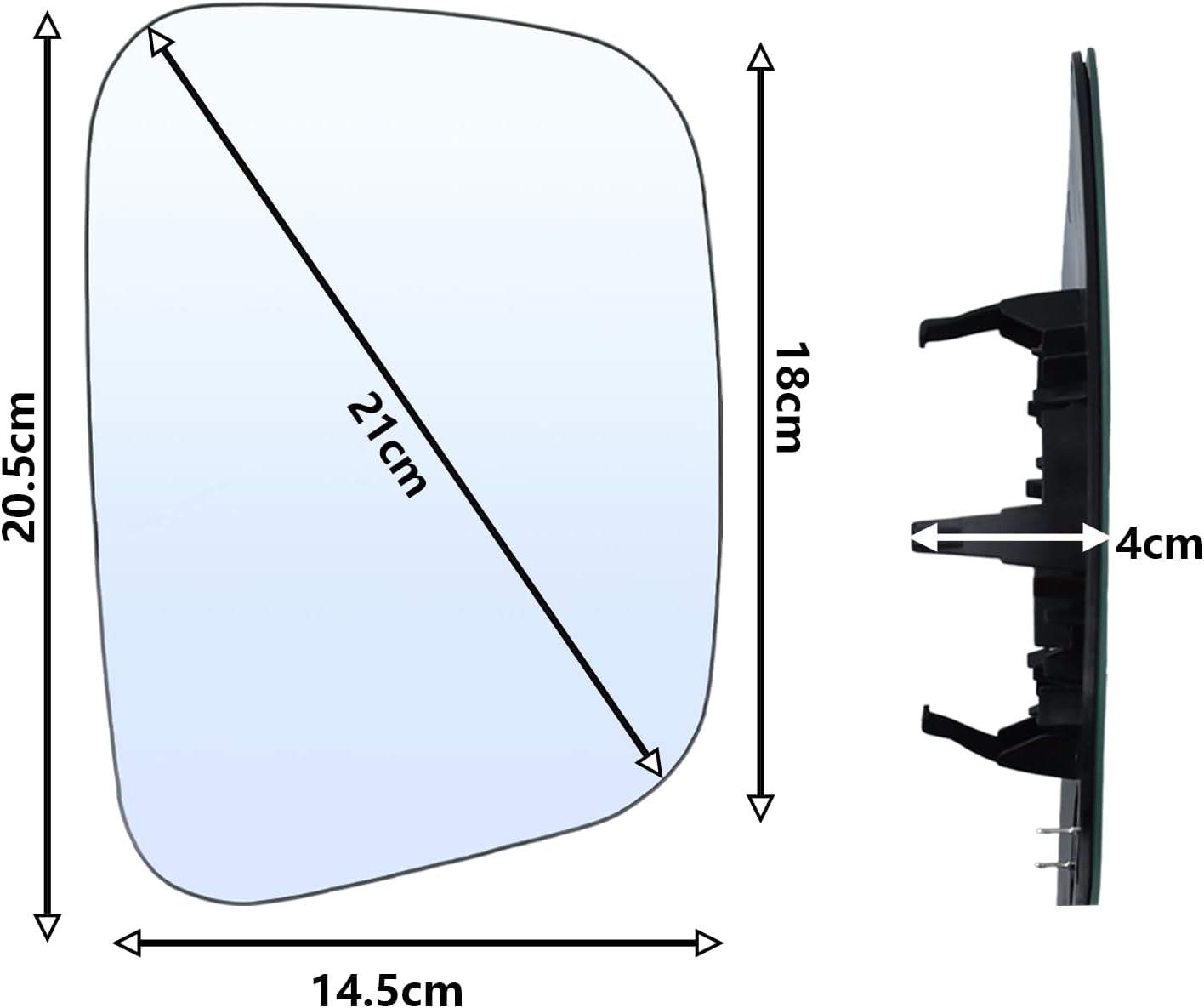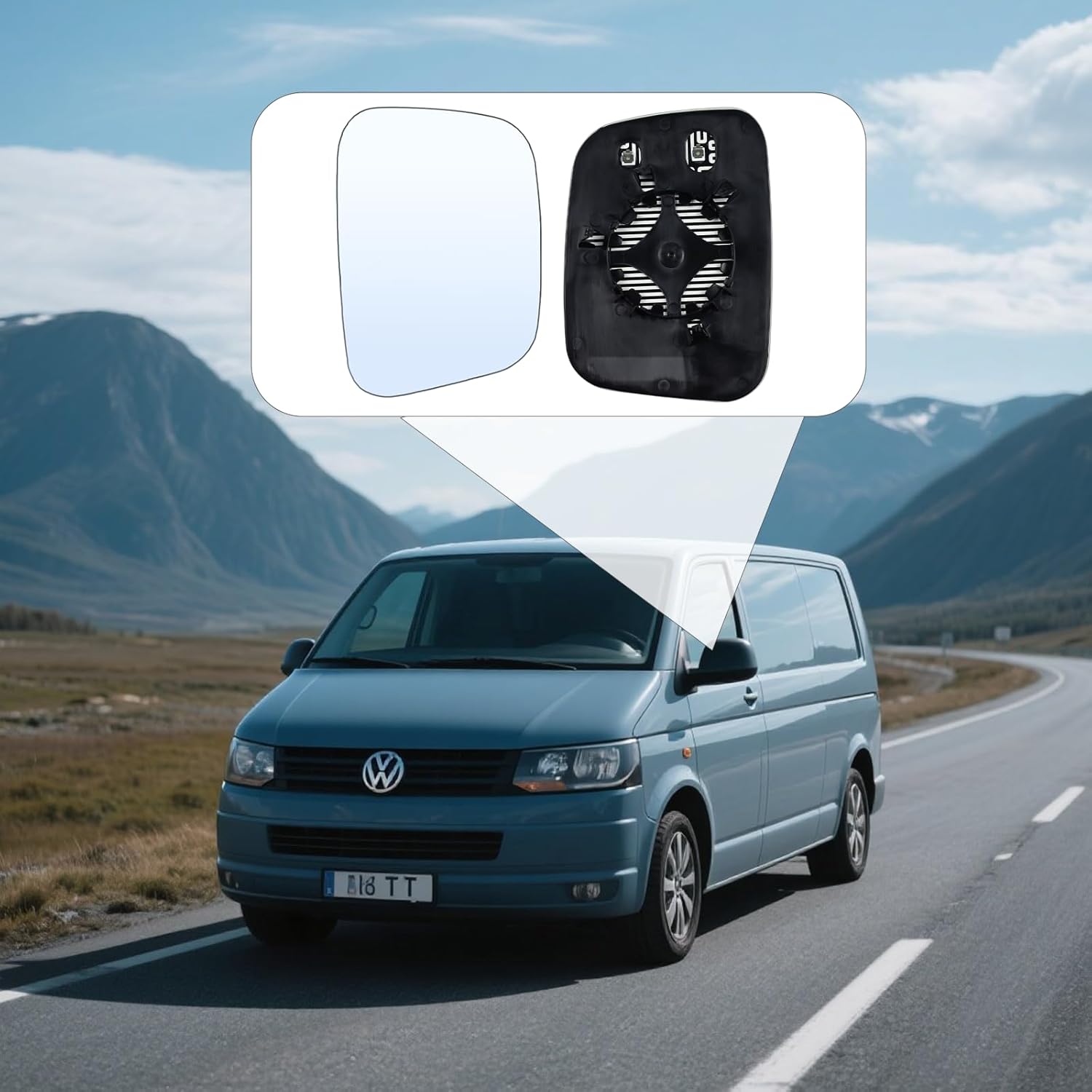 【Compatibilidad perfecta】 Este espejo retrovisor con calefacción derecho es compatible con VW T5 (2003-2009) y VW Caddy (2004-2015). Ideal como sustituto del cristal de espejo dañado. Verifique el modelo de su vehículo y la forma de su espejo exterior antes de comprar.