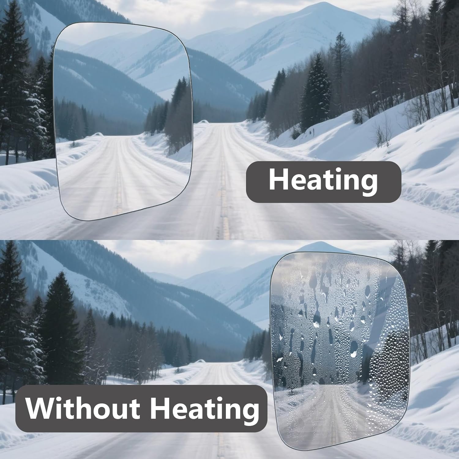 【Calefactable para una visión clara】 El elemento calefactor integrado en el cristal del espejo permite que la niebla, la humedad y el hielo se evaporen rápidamente. De esta forma, mantenga su visibilidad despejada en condiciones de lluvia, nieve o clima frío, mejorando la seguridad en la conducción.