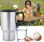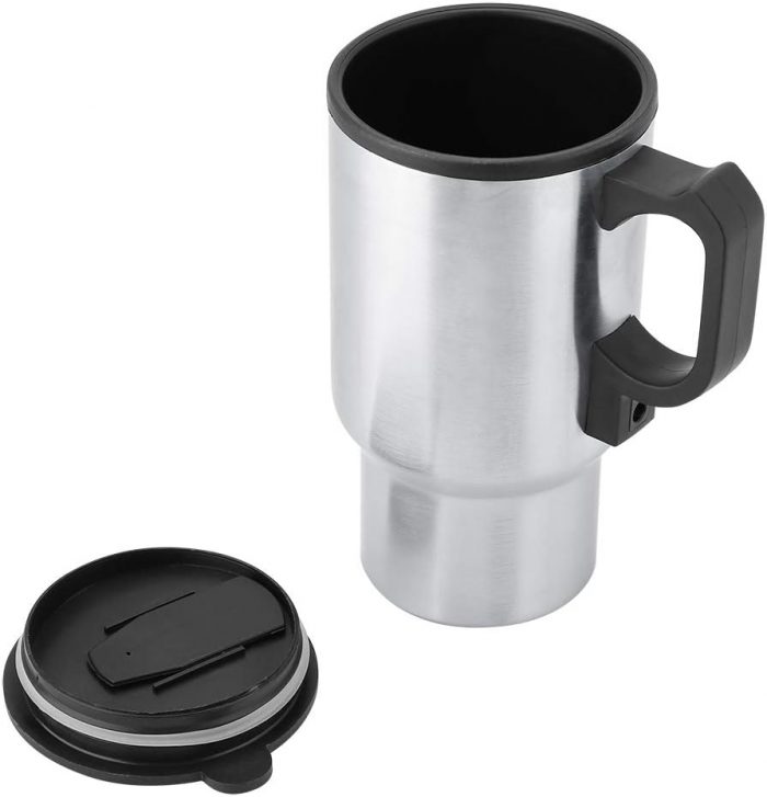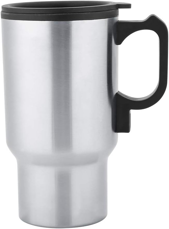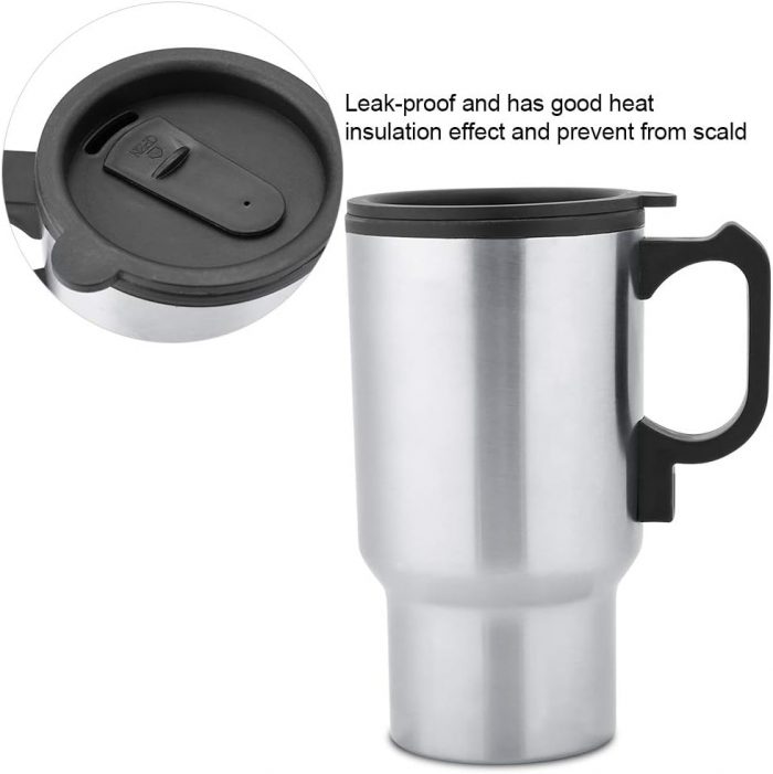 Esta taza calefactora portátil está hecha de Acero inoxidable de primera calidad, saludable, sólido y resistente al uso. La tapa tiene un buen sellado y garantiza que las bebidas no se derramen. La taza se adapta a la mayoría de los portavasos de vehículos, adecuada para viajes en coche, picnic, camping y otras actividades al aire libre.