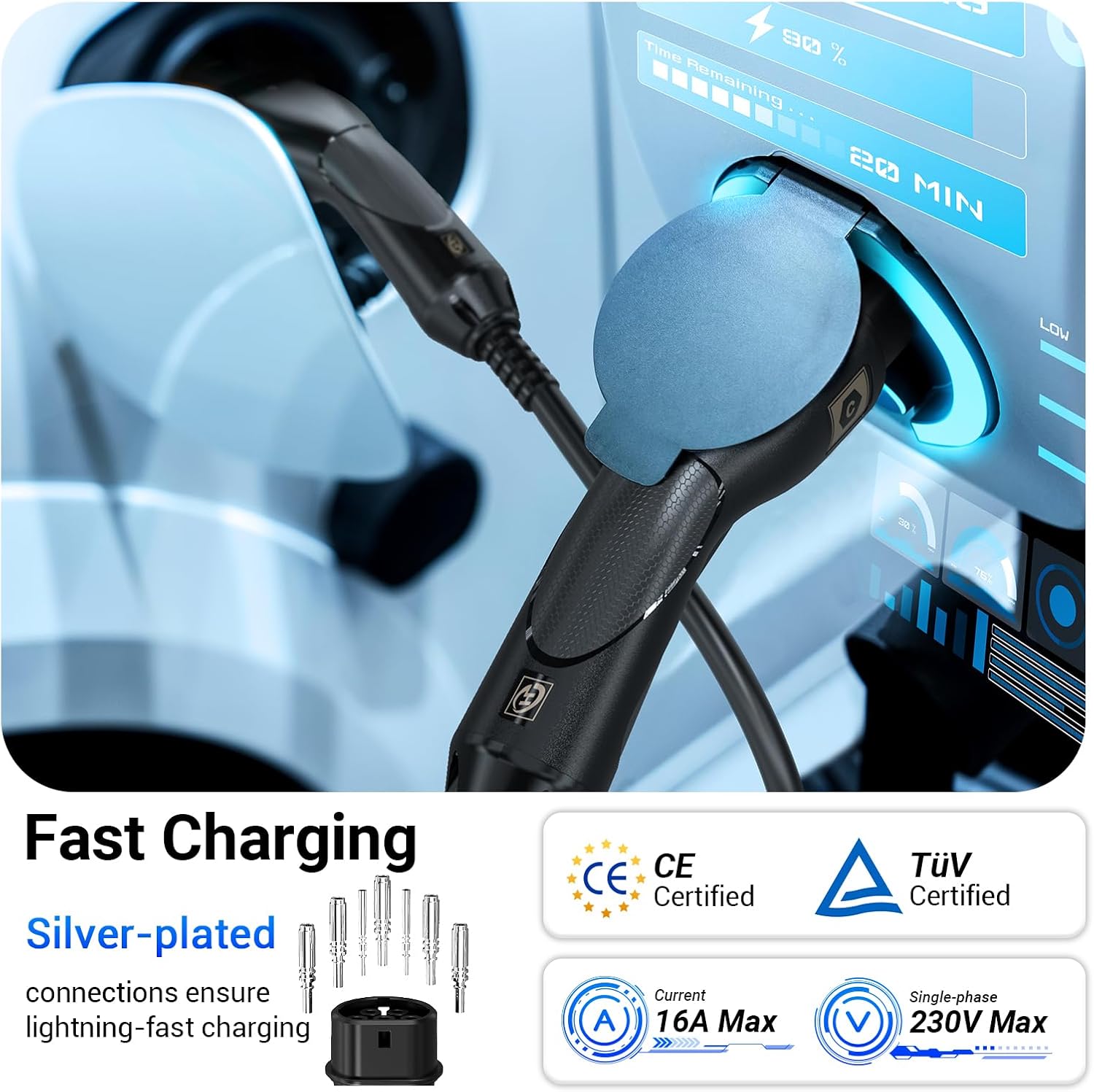 【PERFECT COMPATIBILITY】Ideal for wallbox at home or on the go electric charging stations. Compatible with all electric vehicles and plug-in hybrid electric vehicles according to EU standard IEC 62196-2 with Type 2 connector.