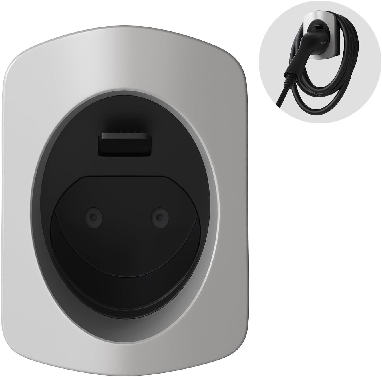 Home Other manufacturers Portable chargers Tera EV Holder para conector tipo 2, soporte de pared y soporte para cables para cables de carga de hasta 7,5 m, material robusto y resistente a la intemperie, accesorio organizador plateado