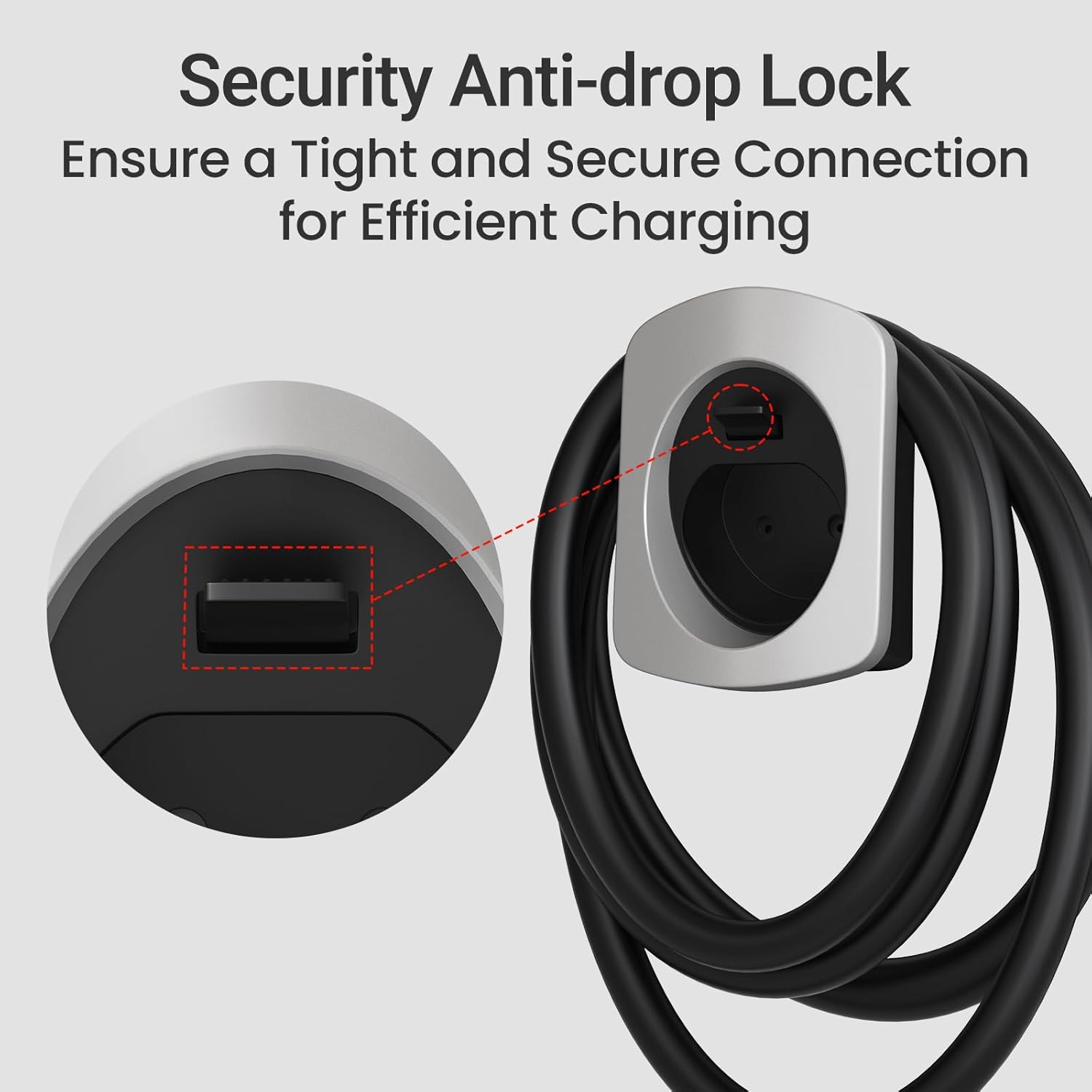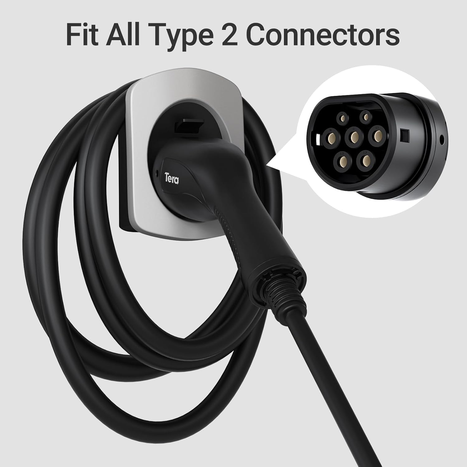 【Compatibilidad universal para cargadores EV tipo 2】El soporte del cargador Tera EV está diseñado para ser universalmente compatible con todos los cargadores EV que utilizan la interfaz Type2. Ofrece una solución segura y económica para su vehículo.
