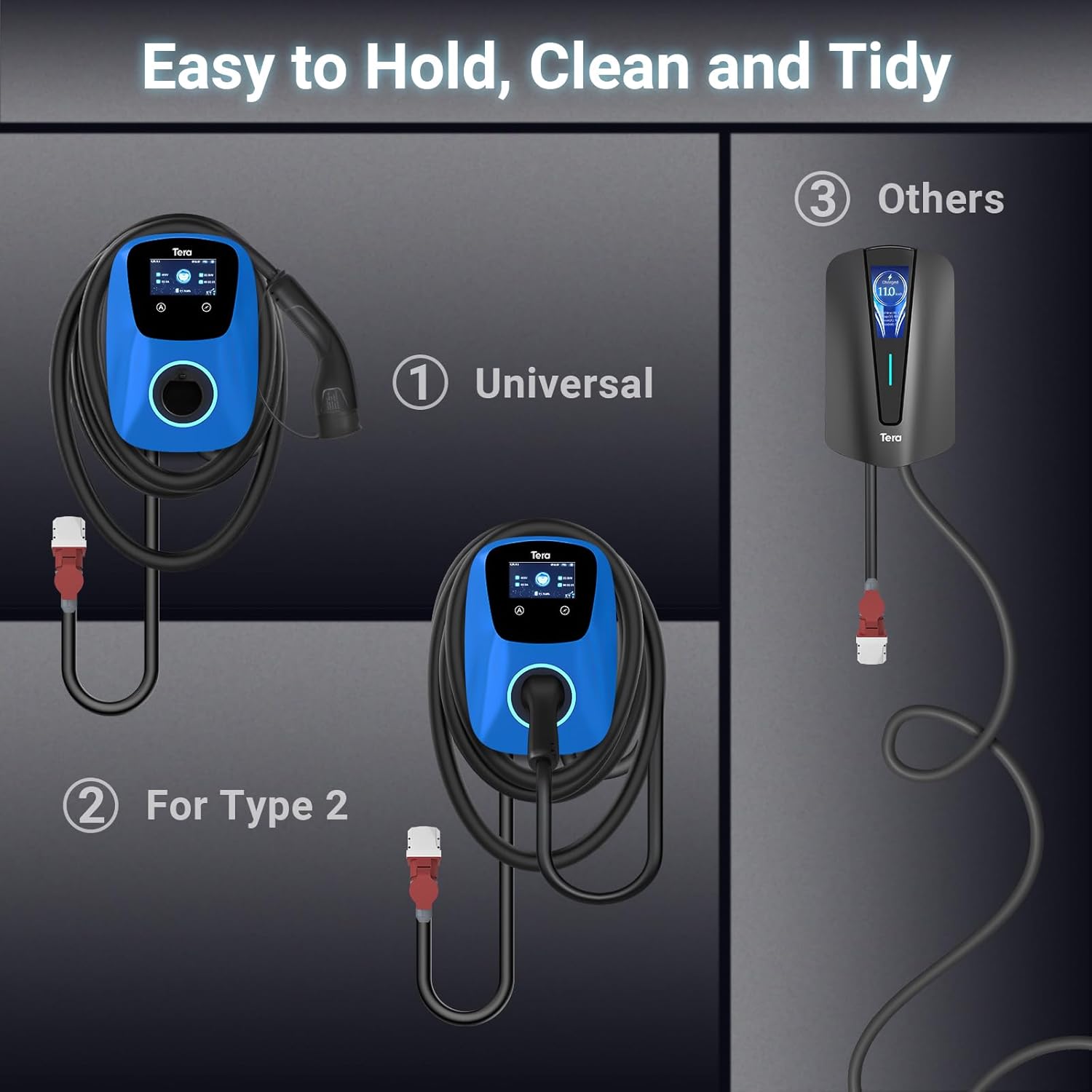 【Extra Cable Holder】 The EV charger offers a space-saving solution for storing your charging cable. It allows you to store your EV charging cable neatly, which saves valuable space and keeps the charging area clean.