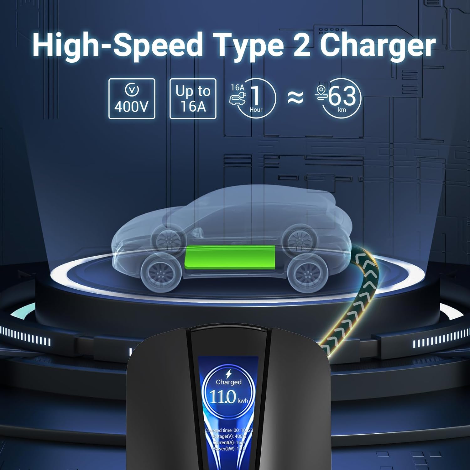 【Simple Installation】 Simply connect the type 2 plug to the power supply. Built-in LEDs show charging progress and possible errors. With an IP55 waterproof rating, it can be used safely in any weather conditions. Withstands temperatures from -30°C to 50°C, ensuring reliable outdoor use all year round. Our dedicated support team offers 24/7 customer support.