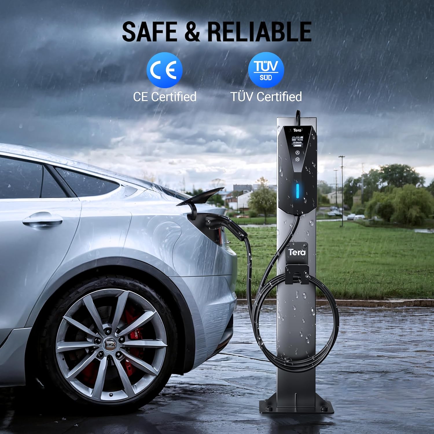 Safe and reliable: CE and TÜV certified. Equipped with protection measures against over-current, over-voltage, over-heating, lightning, short circuit, etc. Smart chip provides full protection for your car battery and plug. We offer a 2-year warranty service!