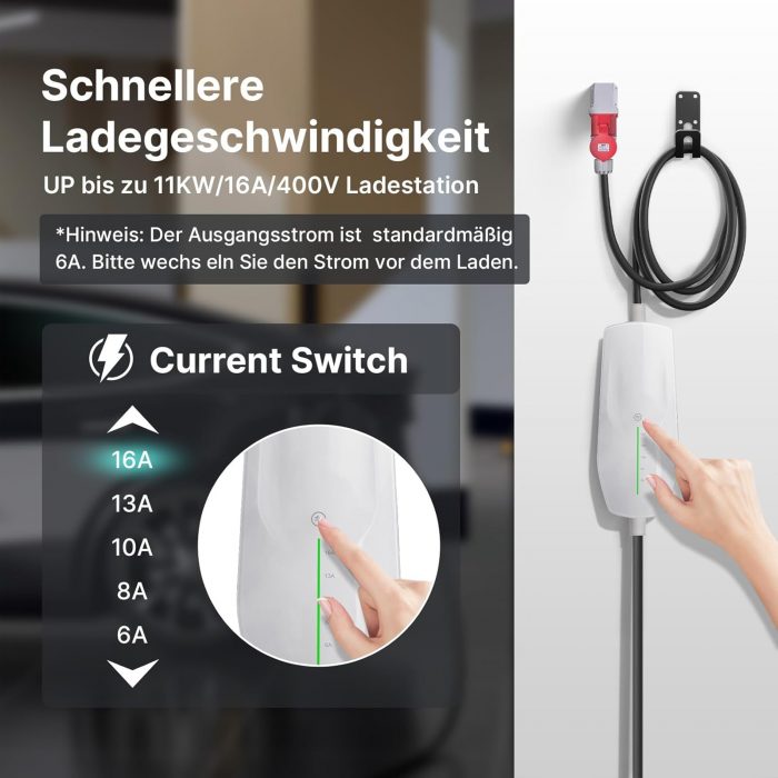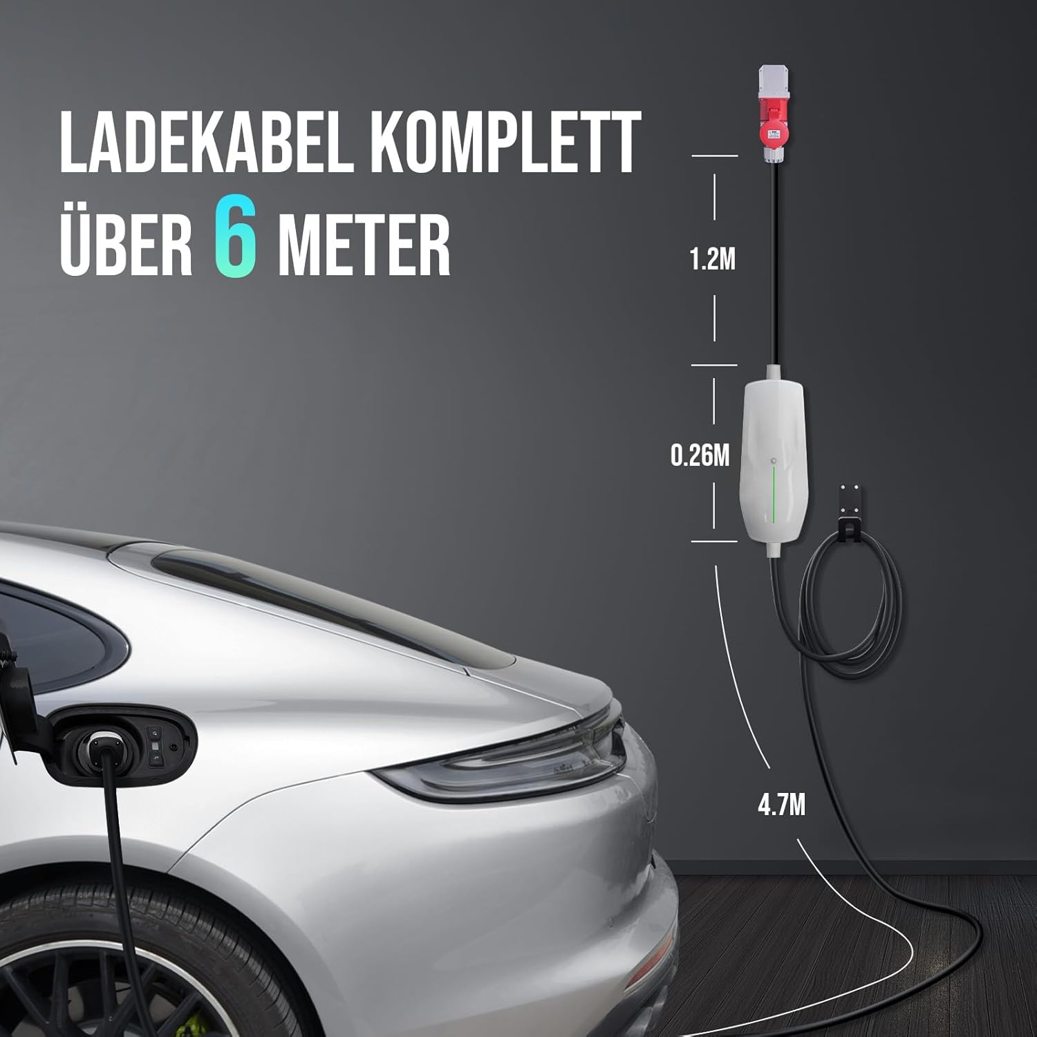 Teskee EV Charger Type 2 Portable Charging Station EV Cars Home Wallbox Compatible with All Type 2 EV Vehicles Installed MAX 11kW 16Amp 6 Meters Length Three Phase Plug CEE
