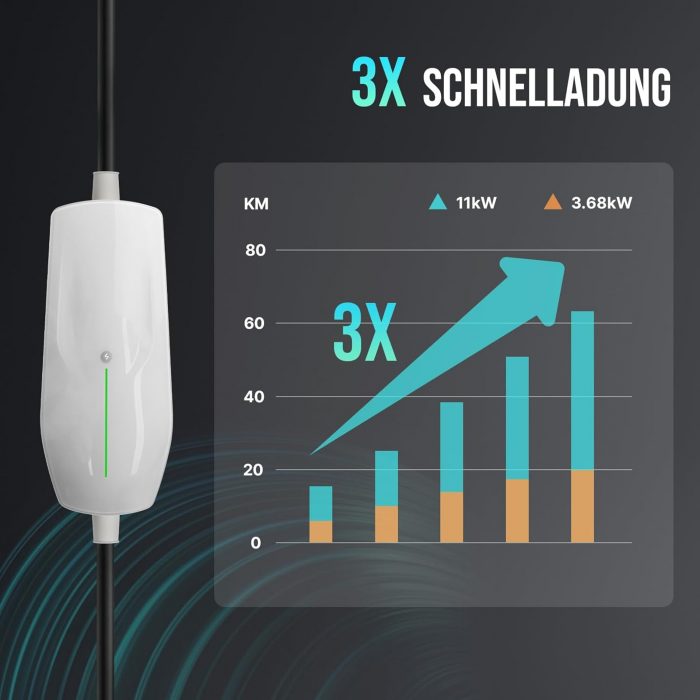 ▶ Fast and stable charging | Maximum charging power 11kW; Max output current 16Amp; 6m long; 3 phases; Mode 2 charging of electric vehicles