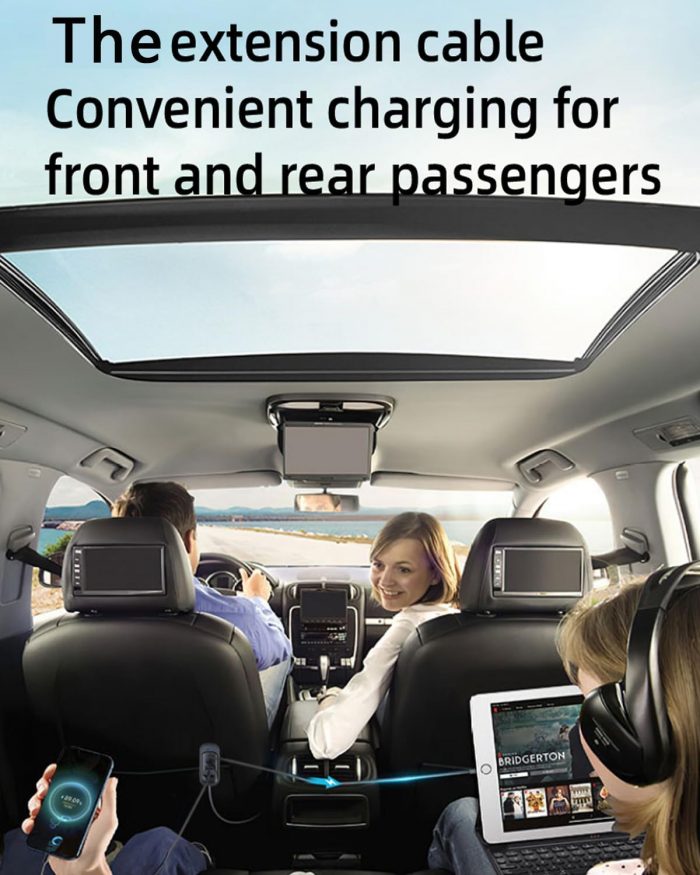 【1.5 Meter Extension Cable & Seat Clip】The 1.5 meter extension cable is convenient for charging passengers sitting in the back seat, and the portable seat clip can help you hang or fix the car charger in one of the pockets, making your car look more tidy.