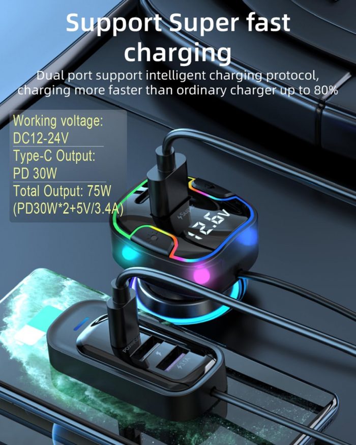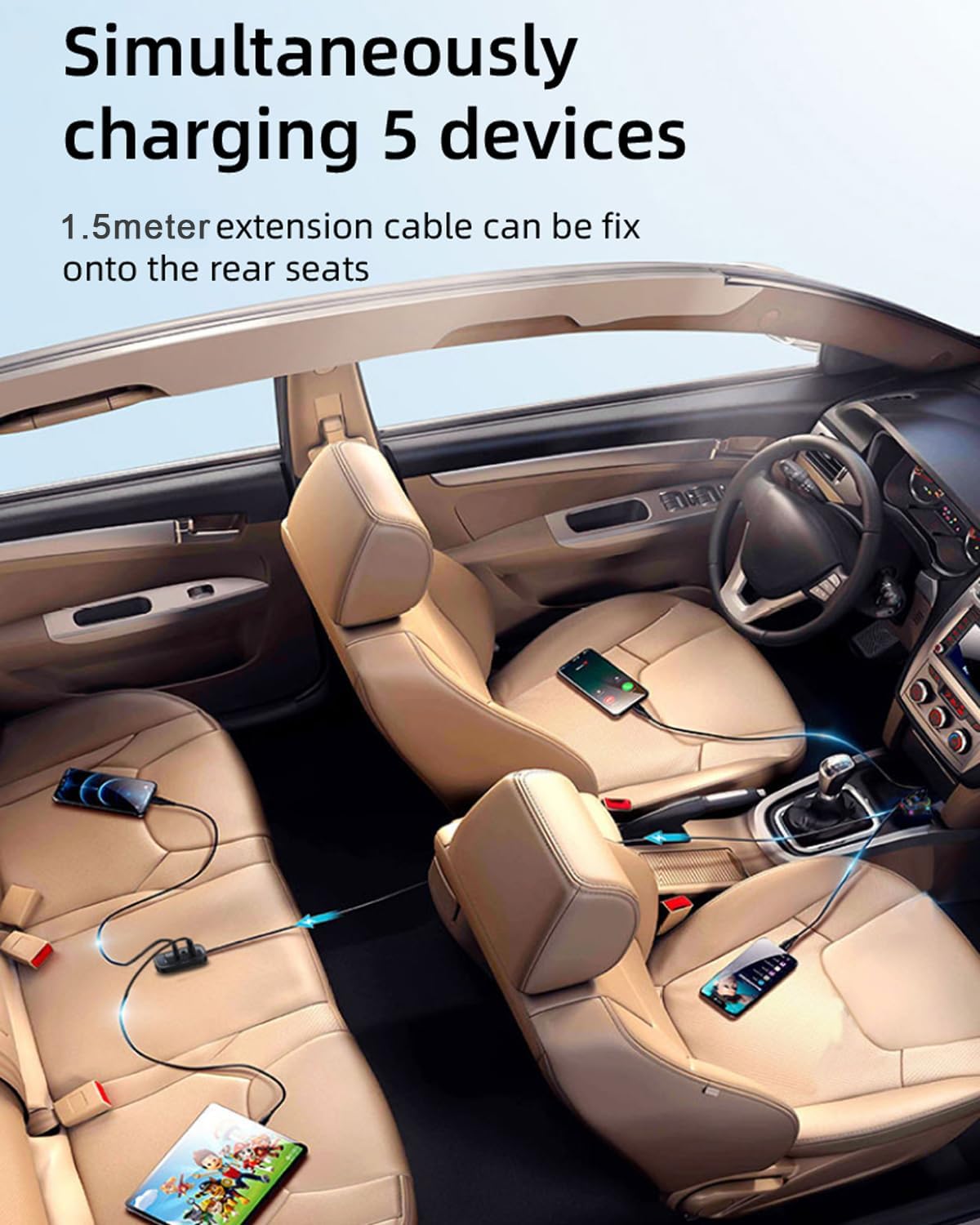 【5-Port USB Car Charger】The 75W USB C auto charger features fast charging and 5 ports, so all passengers can easily charge their electronic devices at the same time.