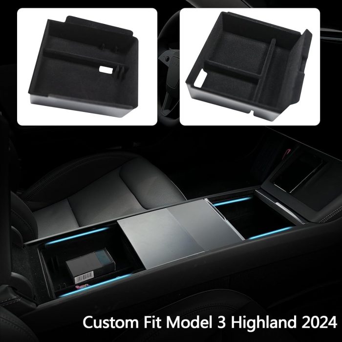 UPGRADE EXTRA SPACE – Tesla Upgrade center console tray for better use of storage space, easy organization, has large storage space for mobile phone, driving license, bank card, glasses, money, keys, lipstick etc.