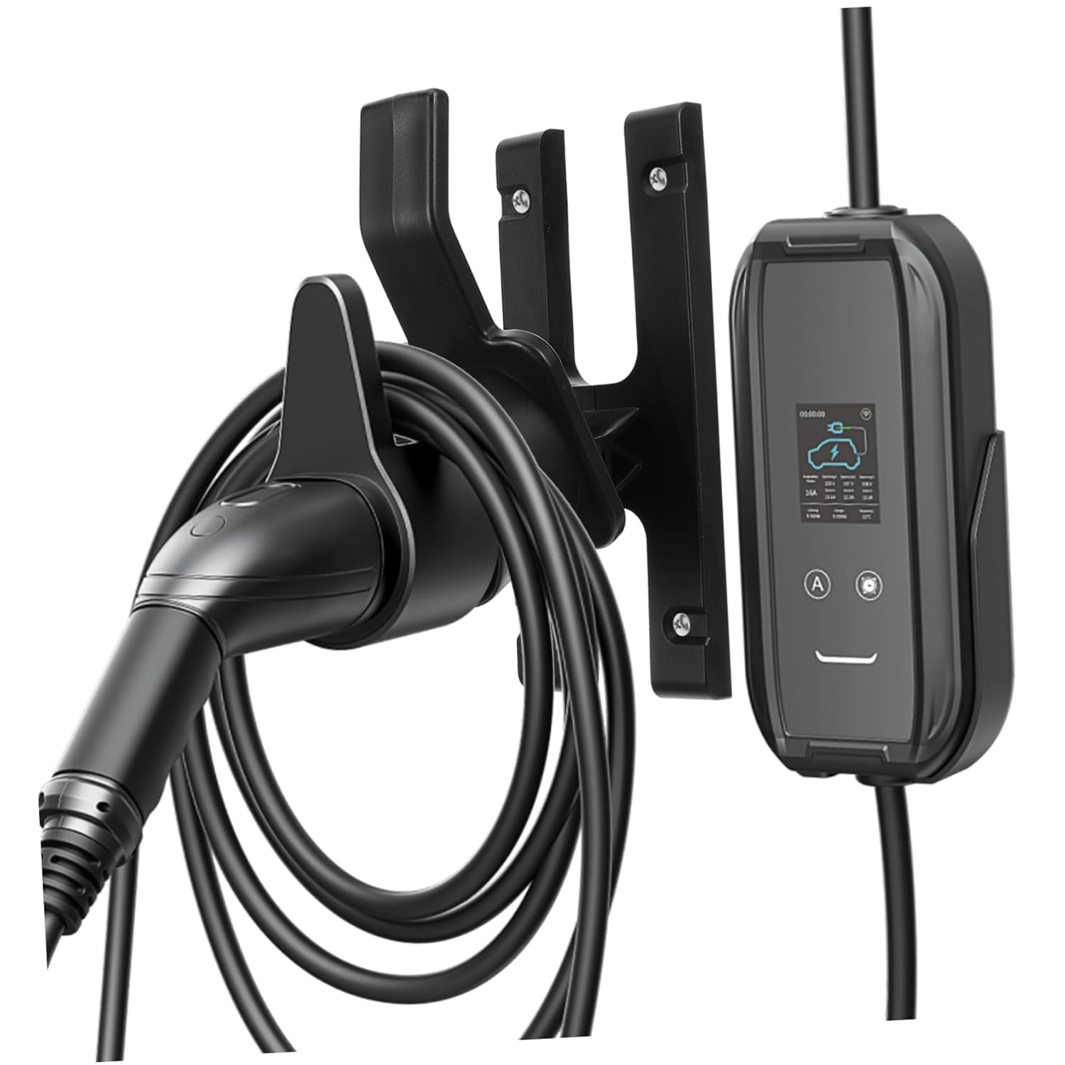 Práctico soporte para colgar: presenta un diseño fácil de usar con un soporte para colgar para almacenamiento y accesibilidad, soporte para cargador ev para exteriores, soporte para cable de cargador ev