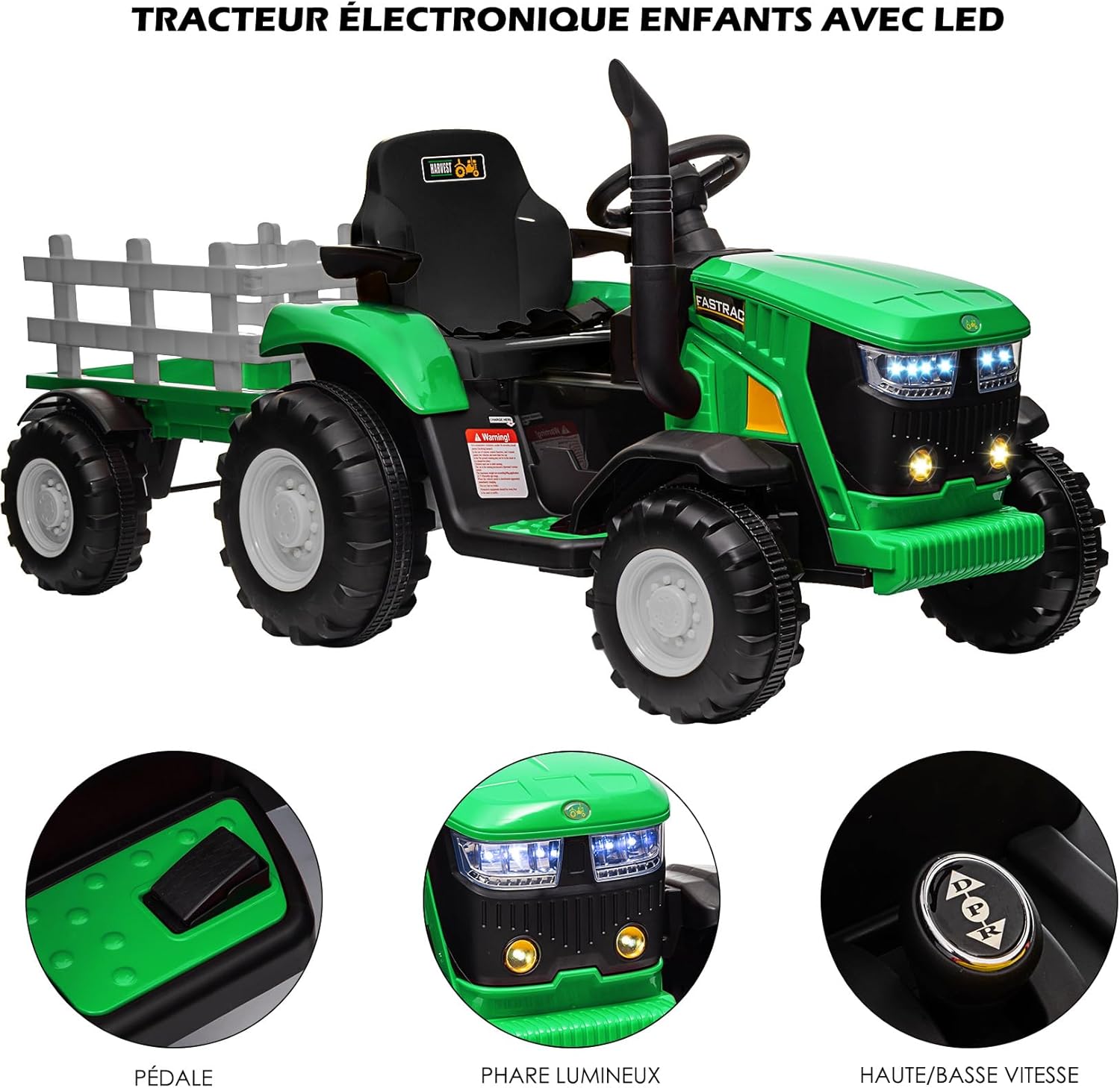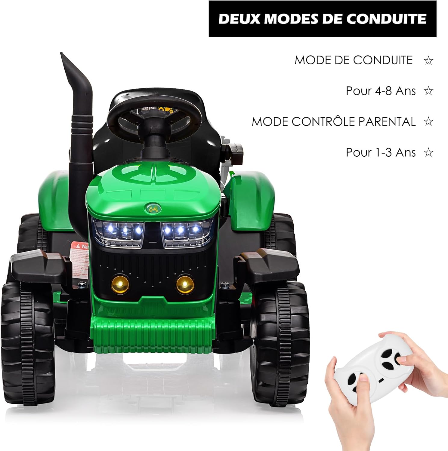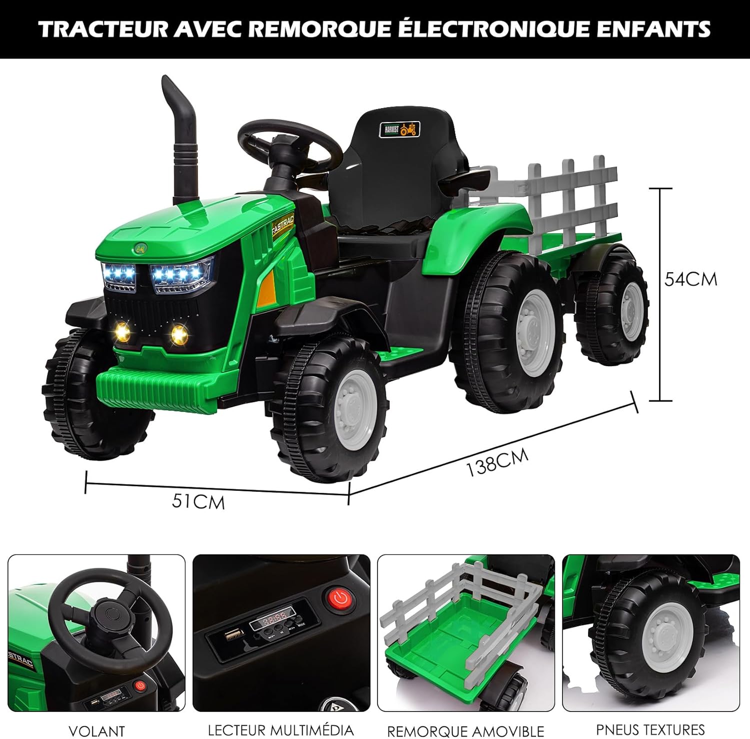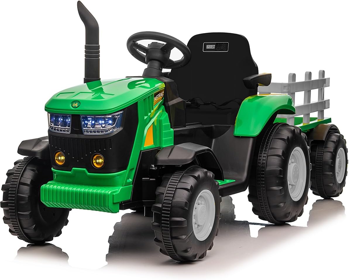 TORRE DESTACADA: Este tractor eléctrico incluye un remolque extraíble que no solo puede contener juguetes pequeños y refrigerios, sino que también permite a los niños conducir por el patio o el jardín y transportar herramientas y suministros de jardín para disfrutar aún más.