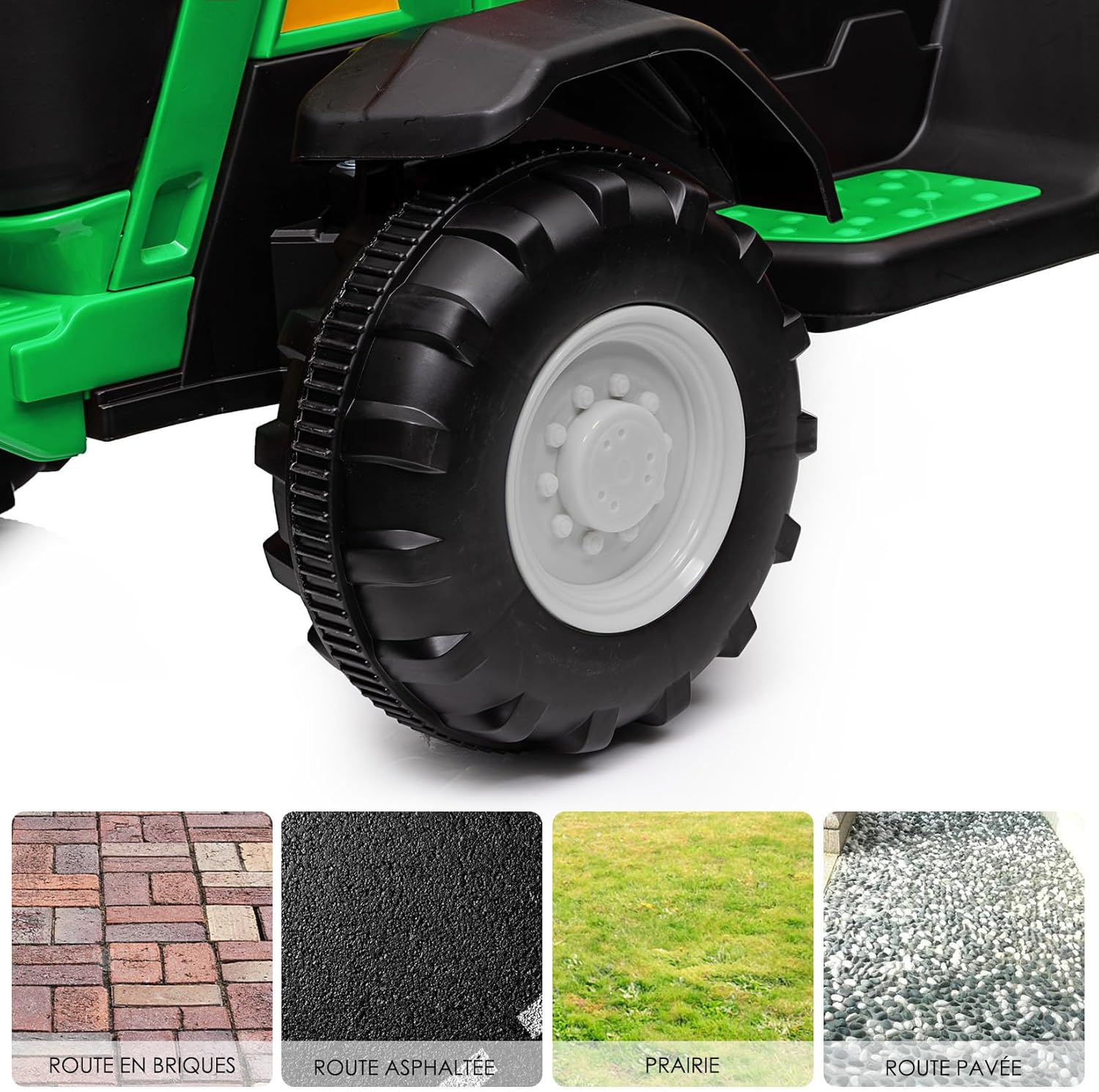 RENDIMIENTO EXCEPCIONAL: Este automóvil electrónico para niños cuenta con una batería recargable de gran capacidad de alta calidad y dos potentes motores de 35 W, este tractor de juguete se puede conducir rápidamente incluso en terrenos complejos como césped, tierra y grava durante mucho tiempo, soportando una carga máxima de 30 kg.