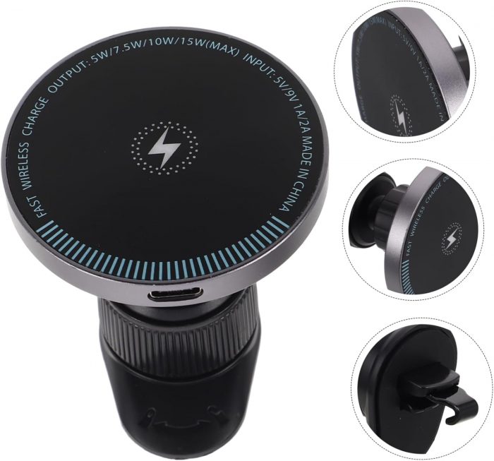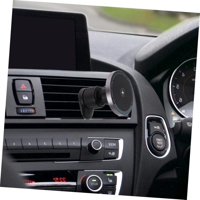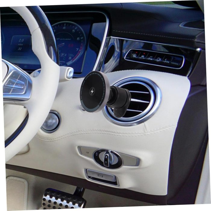 Accesorios para el auto Manténgase conectado y cargado con este soporte para teléfono para automóvil con cargador. Estación de carga para teléfono El soporte magnético proporciona una para su teléfono, mientras que la función de carga inalámbrica garantiza que su dispositivo permanezca encendido. Accesorios para teléfono Ideal para viajes largos o desplazamientos diarios, este cargador ofrece una solución confiable y eficiente para mantener su teléfono al y completamente cargado