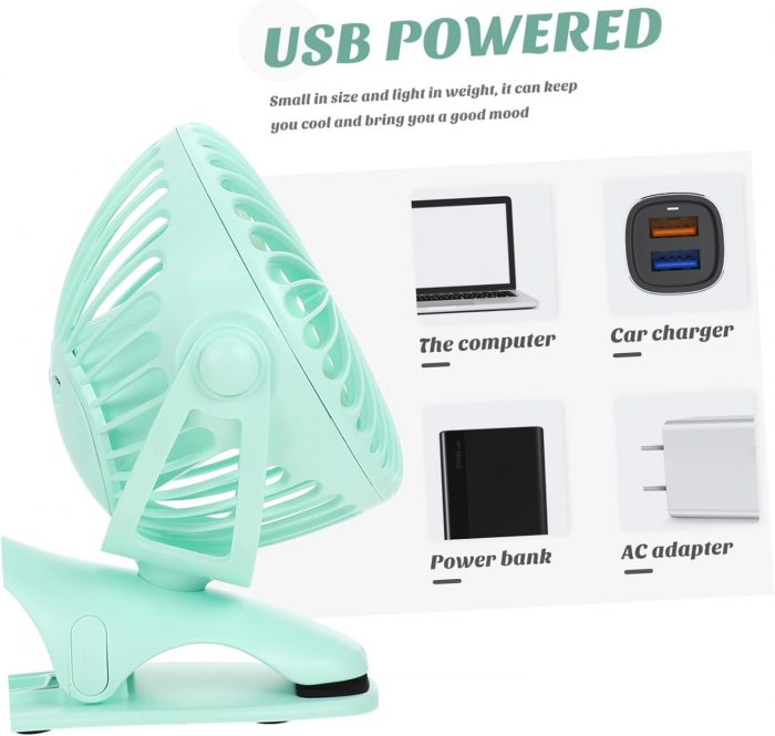 UKCOCO Ventilador Portátil para Coche USB Mini Ventilador Eléctrico Montado Ligero y Silencioso para Aire Acondicionado y Uso Vehículo Práctico y Duradero Color Verde