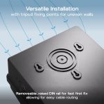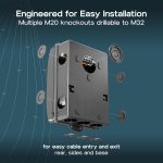 INSTALACIÓN VERSÁTIL Y FÁCIL: Cuenta con un riel DIN elevado y extraíble para una primera conexión rápida que ofrece un enrutamiento de cables más fácil, múltiples entradas de cables M20/M32 y puntos de fijación de trípode para mayor estabilidad. Ideal para instalaciones domésticas.
