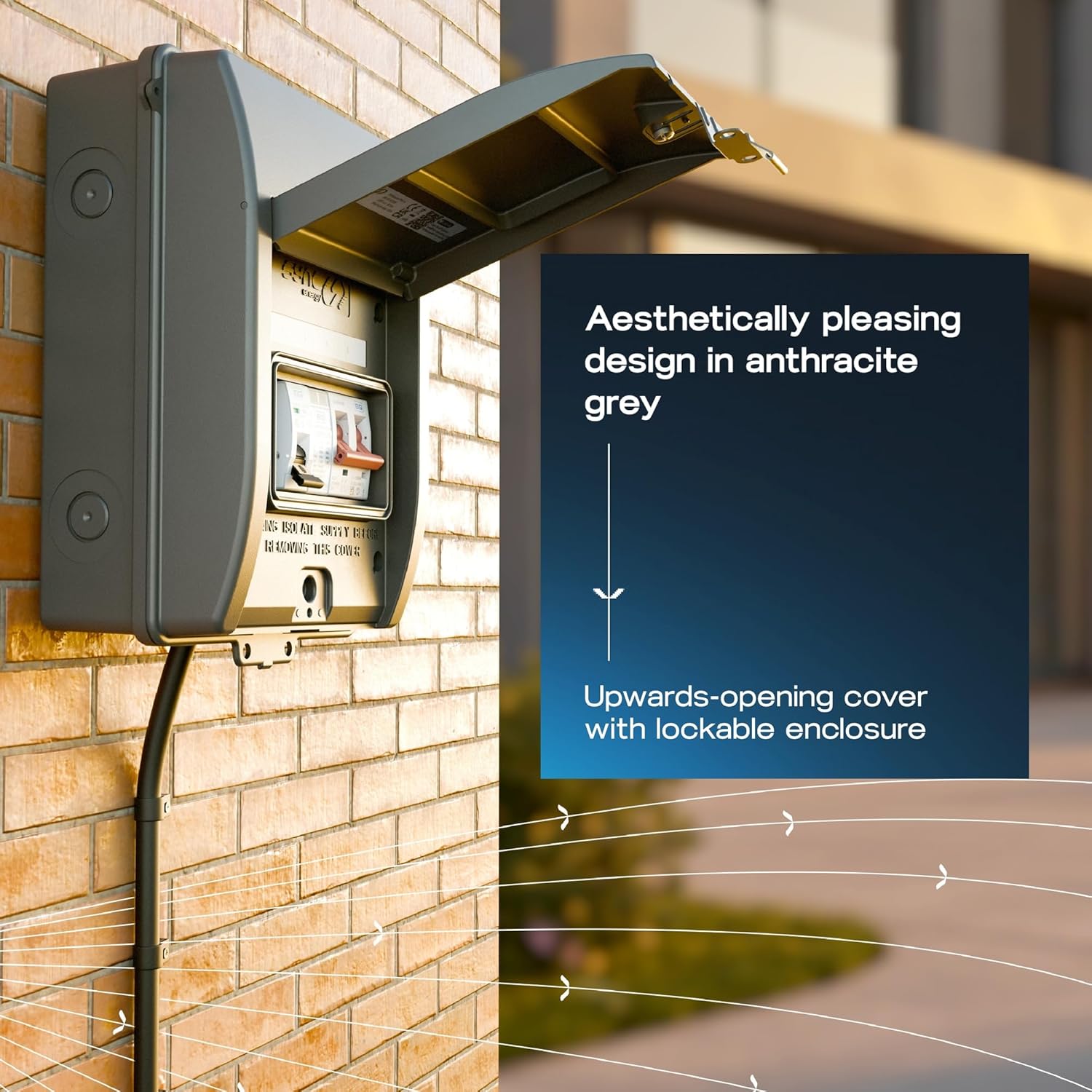 UN DISEÑO DURADERO: la construcción metálica en gris antracita tiene una clasificación de resistencia a la intemperie IP65 cuando está cerrada, lo que garantiza una larga vida útil. Diseñado para usar con cargadores de vehículos eléctricos para permitir instalaciones de cableado externo. Certificado según las regulaciones de la Enmienda 3 de la 18ª Edición.