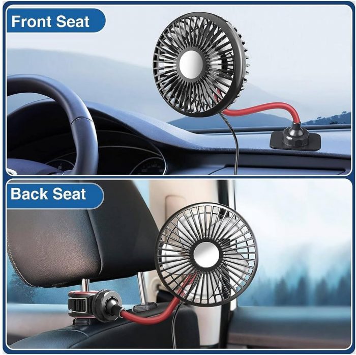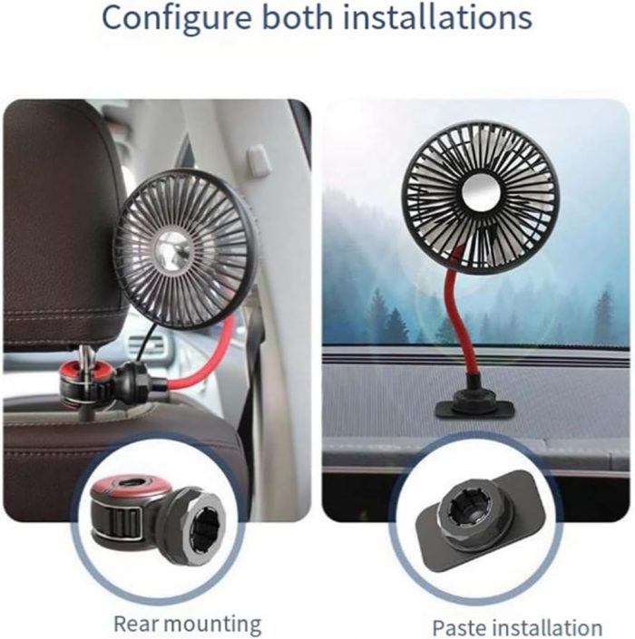 [Ventilador con clip versión mejorada] En comparación con mayoría los ventiladores automóvil, este pequeño ventilador enfriamiento para asiento automóvil tiene un diseño manguera silicona ajustable 360°, lo que le permite dirigirlo a cualquier lugar que desee, el ventilador portátil para automóvil viene con un clip duradero, sostiene el ventilador forma segura en el reposacabezas asiento trasero. Se puede instalar y quitar rápidamente a mano sin necesidad herramientas fácilmente.