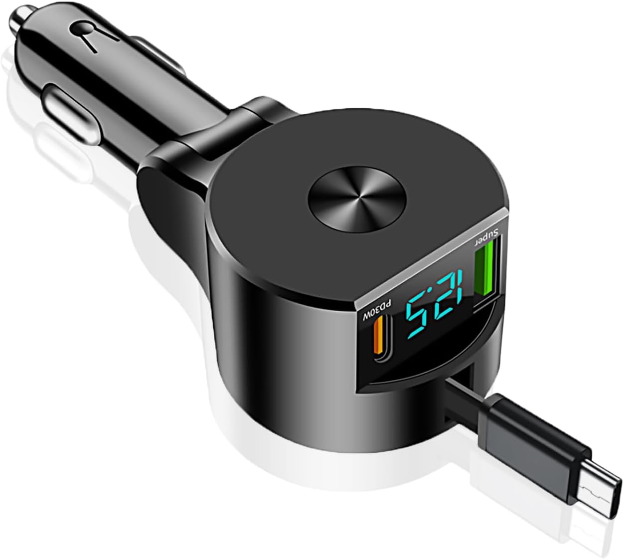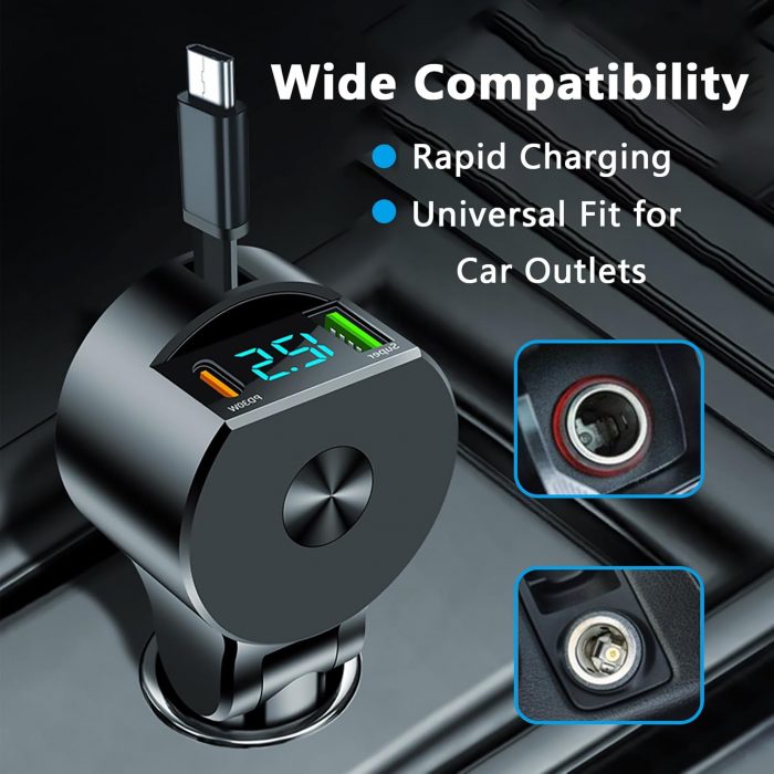 VGE 75W Retractable Car Charger, Car Cigarette Lighter Adapter, 12V/24V USB C, Fast Charger for 3 Devices at the Same Time, Car Charger for iPhone 15 16, Android, Galaxy