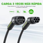 Este cable de carga portátil de 16 A, 11 kW, trifásico y de tipo 2 para vehículos eléctricos está listo para usar y es adecuado para el uso diario.