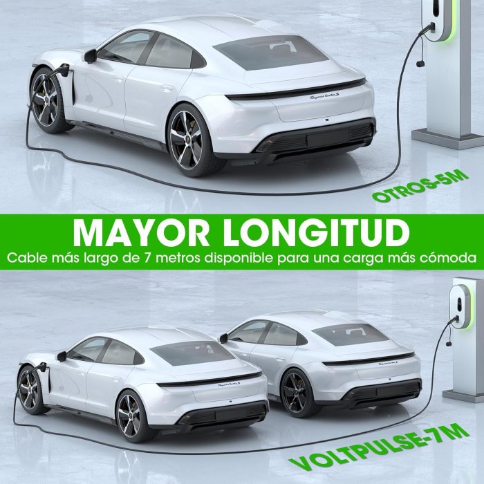 El cable de 7 metros es lo suficientemente largo para conectar su vehículo dondequiera que esté, incluso en entradas o garajes.
