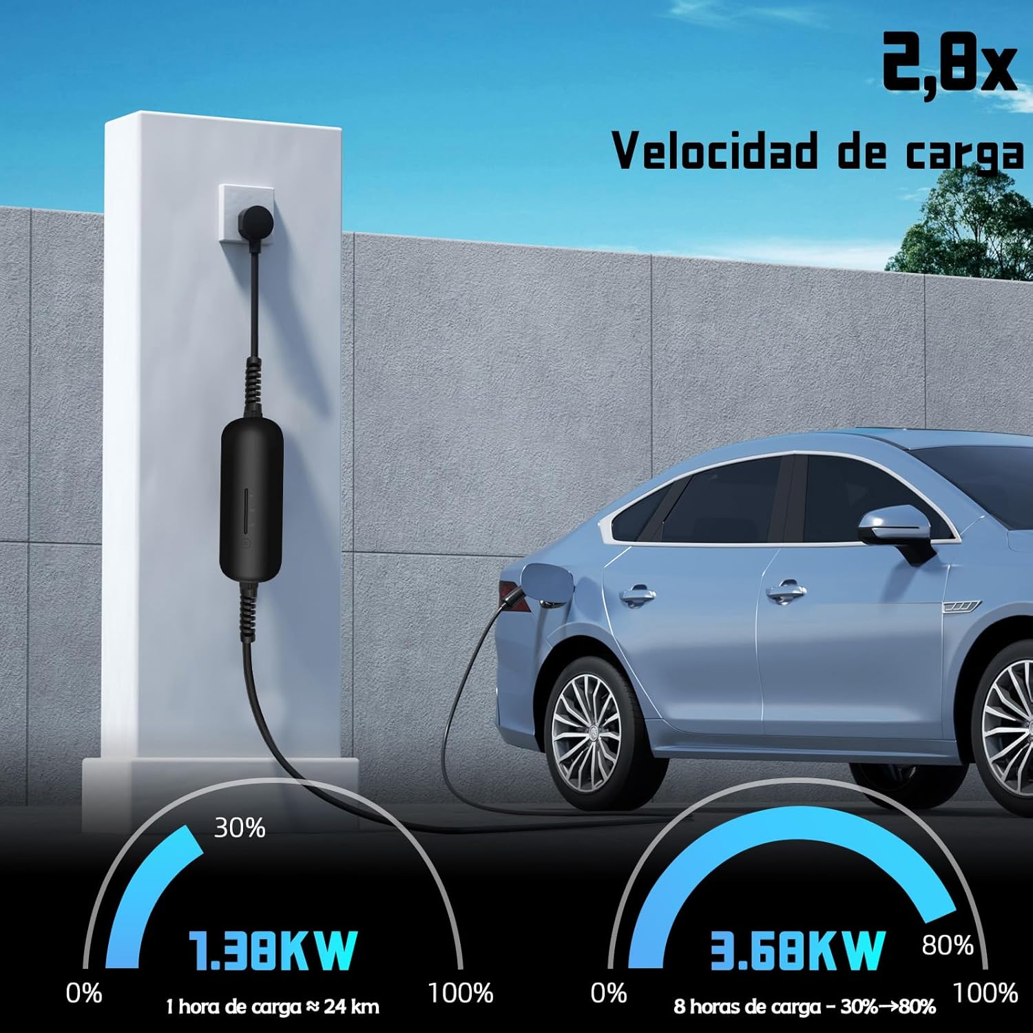 Plug-and-play, fácil de transportar: no requiere instalación compleja, solo necesita un enchufe Schuko tradicional. Su diseño liviano y portátil le permite cargar fácilmente su vehículo, ya sea en casa o mientras viaja