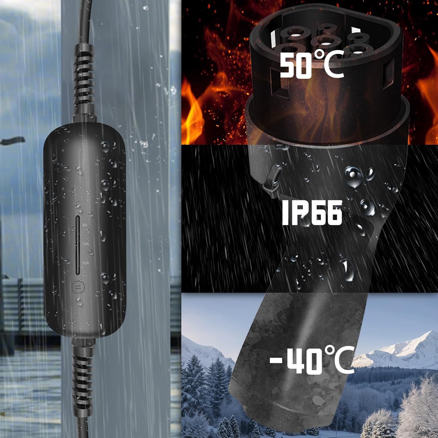 Carga rápida y ajuste de corriente: admite configuraciones de corriente de carga de 8A/10A/16A, lo que ofrece una experiencia de carga más rápida que el método de carga estándar de nivel 1, para satisfacer fácilmente sus necesidades de carga diarias.