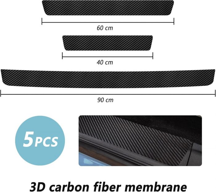 Waterpoof 5-Piece Car Door Protector, Carbon Fiber Rear Bumper Protector Sticker Anti-scratch, Waterpoof Self-Adhesive Bumper Protector Car Accessories (Carbon Black)