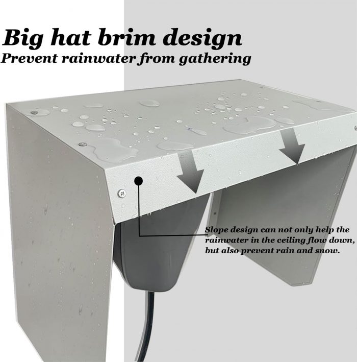 Rainproof Design The roof is equipped with a drainage slope. There will be no accumulation of water even on rainy days. Rainwater can easily flow down the slope without affecting your equipment.