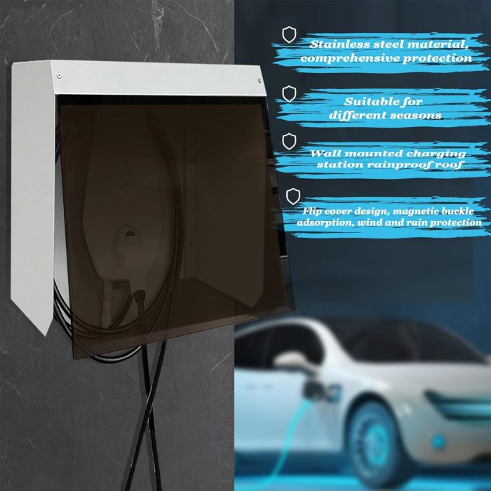 Material: The weatherproof cover is made of metal, the front cover is made of acrylic, the surface of the stainless steel housing is rust-proof, and comes with stainless steel fittings, which are corrosion and wear resistant. The charging station cover protects your charging equipment from inclement weather and extends the life of the equipment.