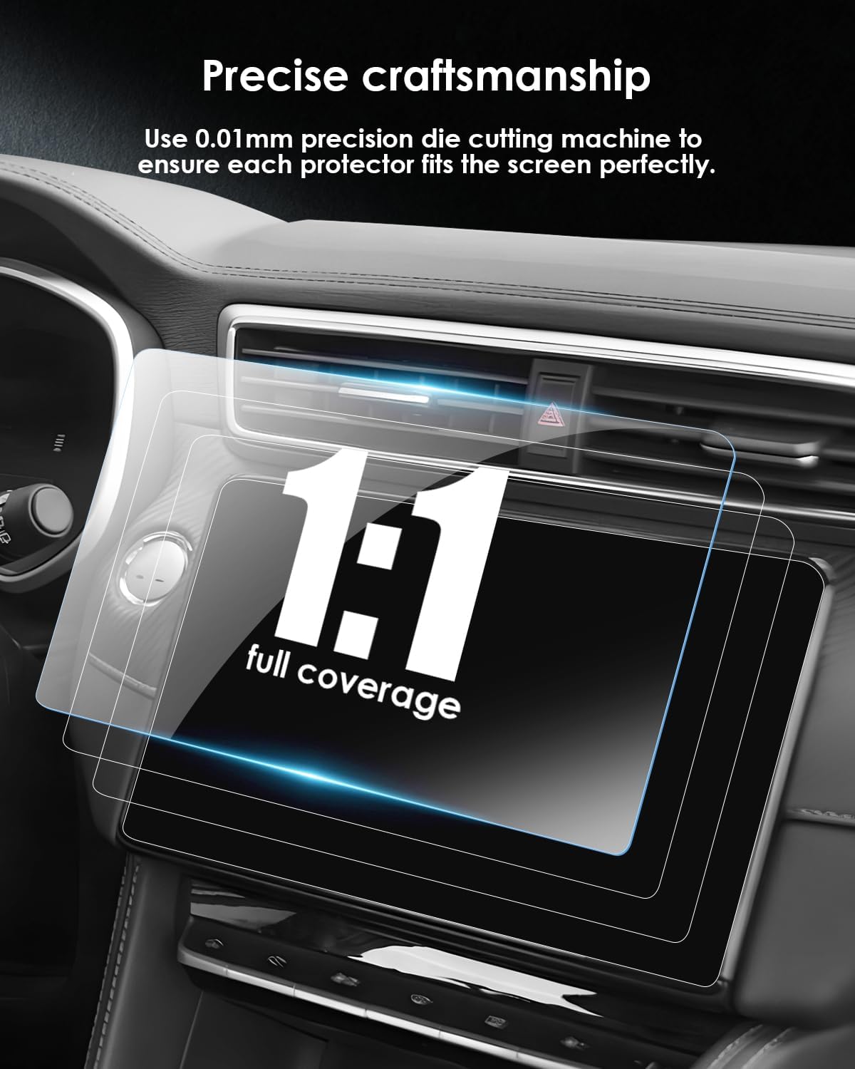 Ajuste perfecto El protector de pantalla GPS se corta con precisión con una máquina cortadora de 0,01 mm y ofrece una cobertura de pantalla completa 1:1. El procesamiento preciso garantiza que cada película protectora se adhiera perfectamente a la pantalla.