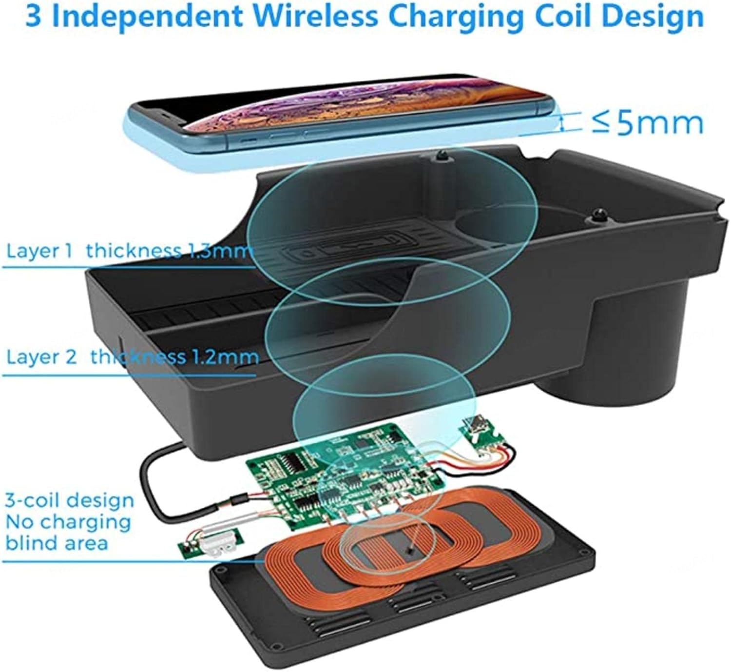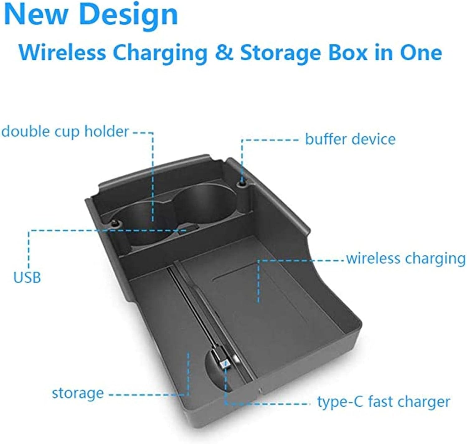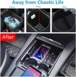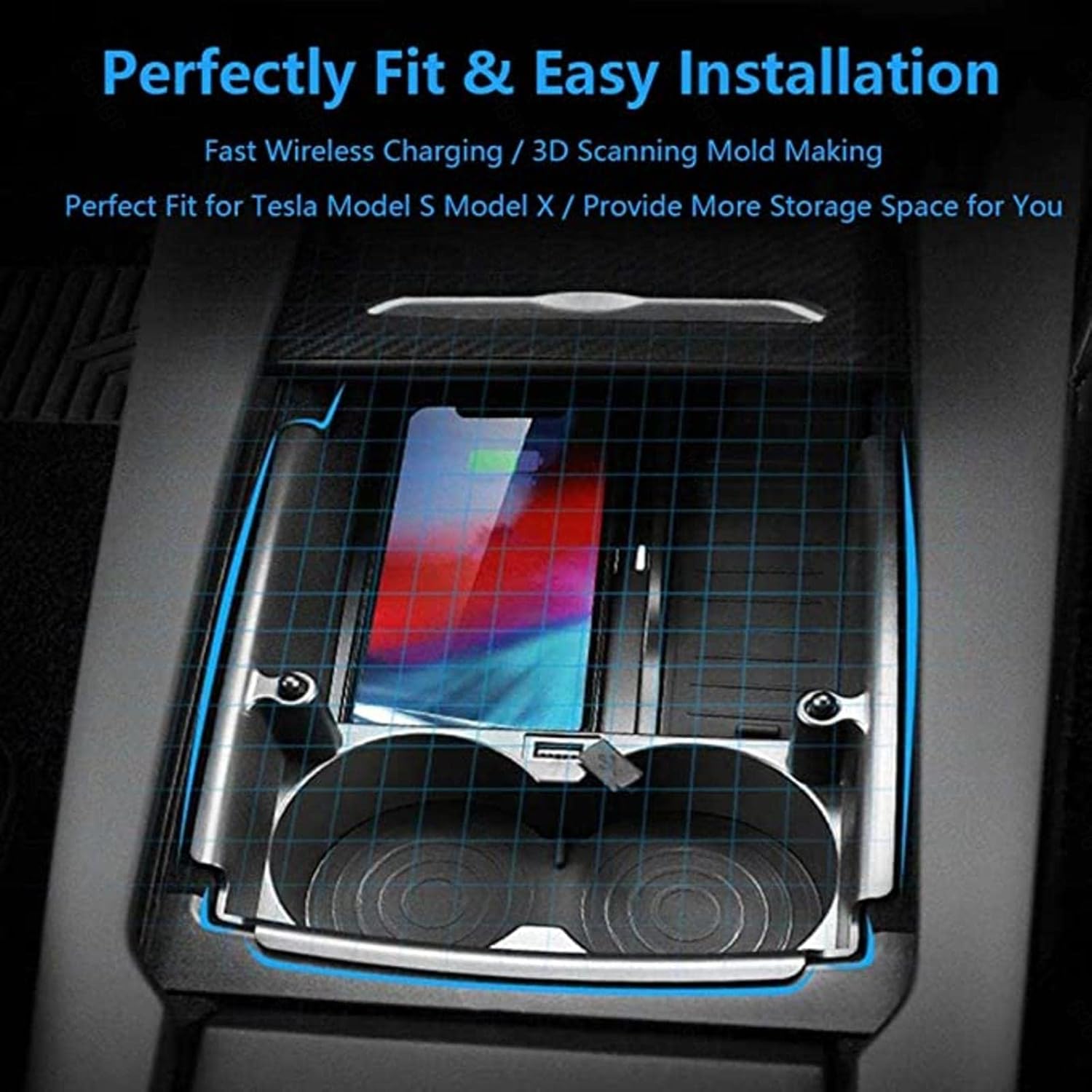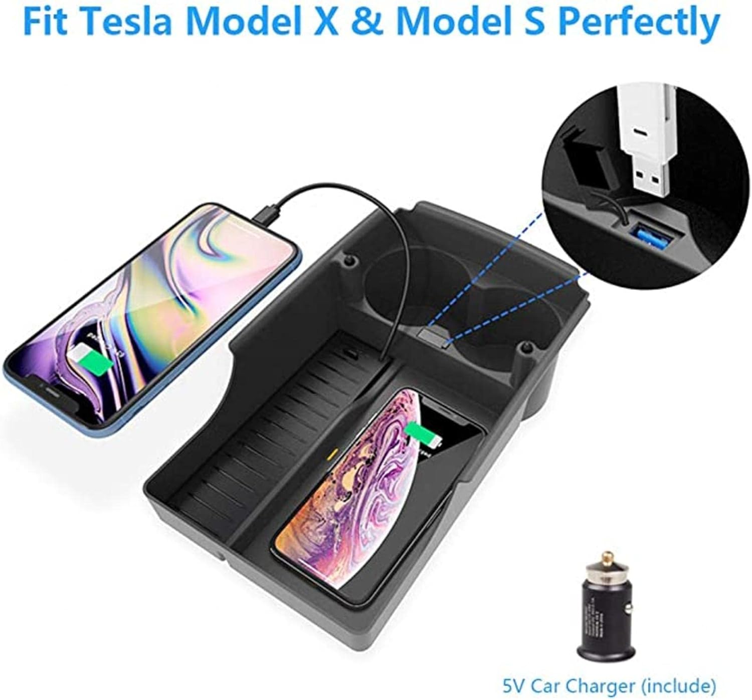 Wireless Car Phone Charger for Te-SLA Model S/Model X 2017-2022 Armrest Case 10W Fast Charging Pad with Storage/Charger with Cable + Port