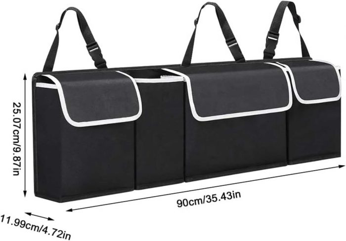 5. Instalación sencilla y uso versátil: ¡No requiere herramientas! Simplemente cuélgalo con ganchos resistentes o correas del reposacabezas del asiento. Úsalo como organizador para el asiento trasero, almacenamiento en el maletero o portabolsas de supermercado. Desmontable y plegable para uso alternativo en casa, la oficina o camping.