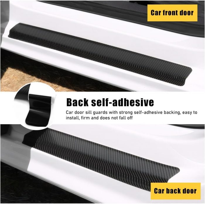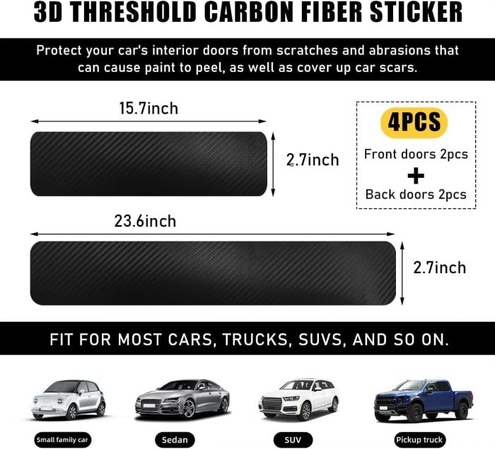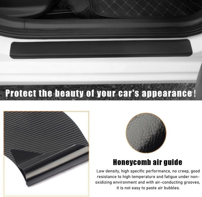 【Material de alta calidad】: Nuestros protectores de umbral de puerta de automóvil están hechos de fibra de carbono de alta calidad, que tiene una mayor durabilidad y una mejor apariencia. Sin olor, material más grueso, resistente al desgaste, antienvejecimiento, impermeable, resistente a altas temperaturas.
