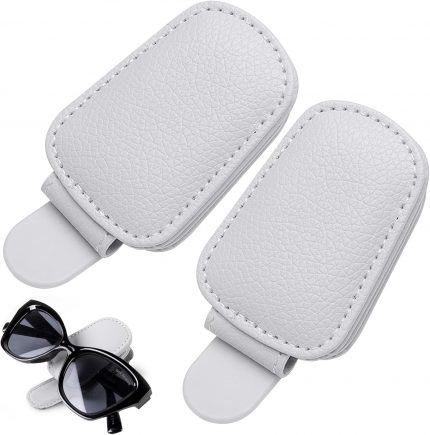 Omnikryp 2 Pieces Car Glasses Holder, Leather Magnetic Clip for Hanging Glasses, Ticket Cards, Universal Car Visor Accessories (Grey)