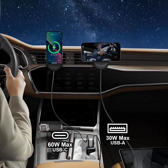 Ultra-fast charging with advanced technology: The Quick Charge Car Charger combines Power Delivery 3.0 (30W) and Quick Charge 3.0 (22.5W) to charge your phone up to 80% in just 30 minutes and your iPad to 60% in 35 minutes. Perfect for those who value speed and efficiency on every journey