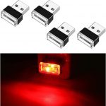 Ziciner 4 PCS USB LED Car Interior Atmosphere Lamp, Portable Mini LED Night Light, Plug-in USB Interface Trunk Ambient Lighting Kit, Universal Car Interior Accessories (Red)