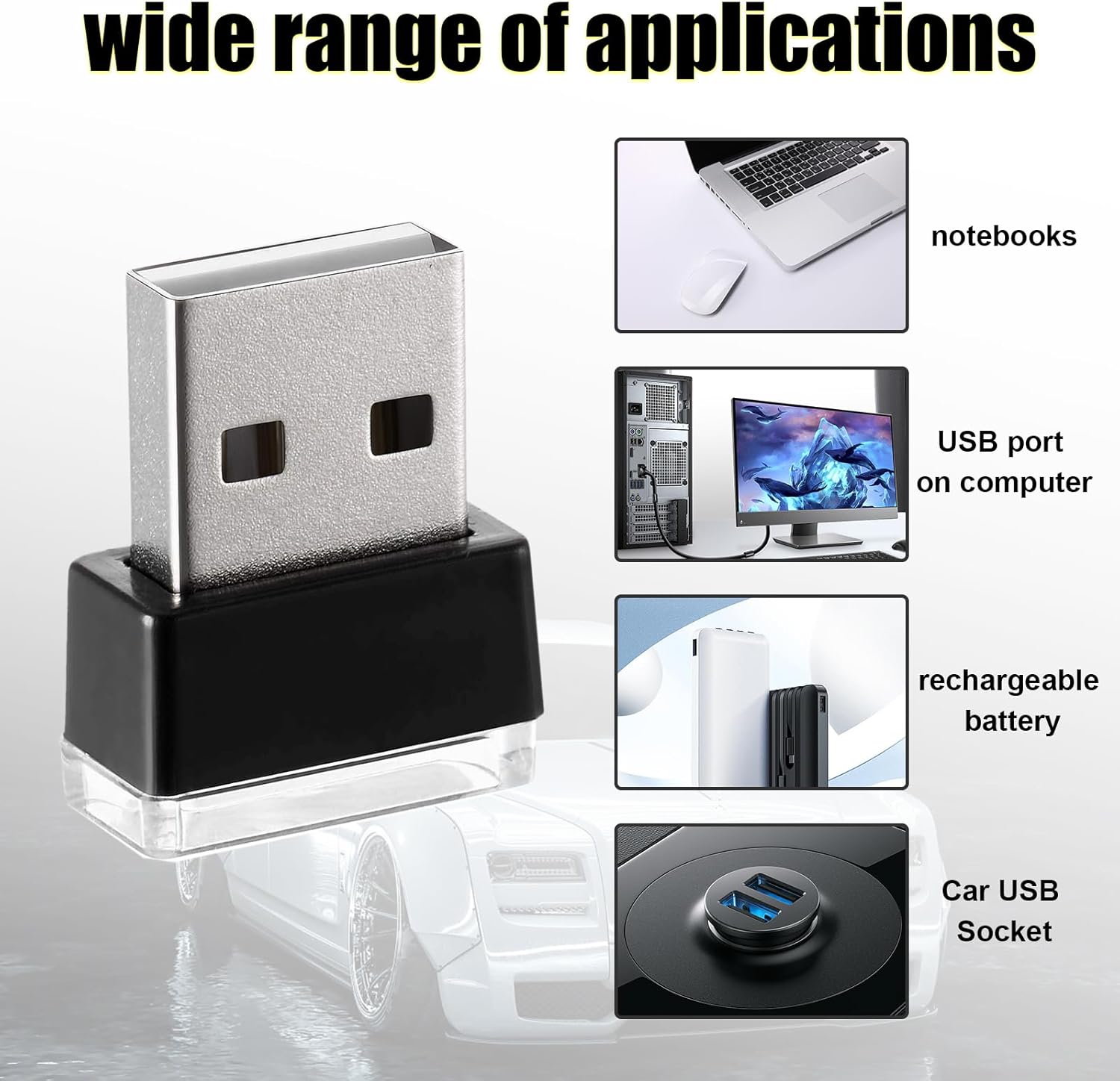 【Wide Application】: This USB LED light can not only be used in the car, but also suitable for all devices with USB port, such as computers, laptops, etc. It can also be connected to a USB charger and put on the wall. Not only can you put it in your car, but also in your bedroom, bathroom, kitchen. In addition, it can be used as a gift for your family and friends.