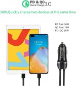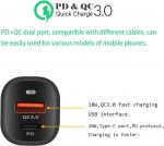 【Adaptive Fast Charging】 This is a dual port output charger combining Type-C and USB A and the USB-C port provides high-speed 20W PD output and USB-A port provides high-speed 18W output for extremely efficient charging. Double kinetic energy configuration, can quickly charge two devices at the same time.