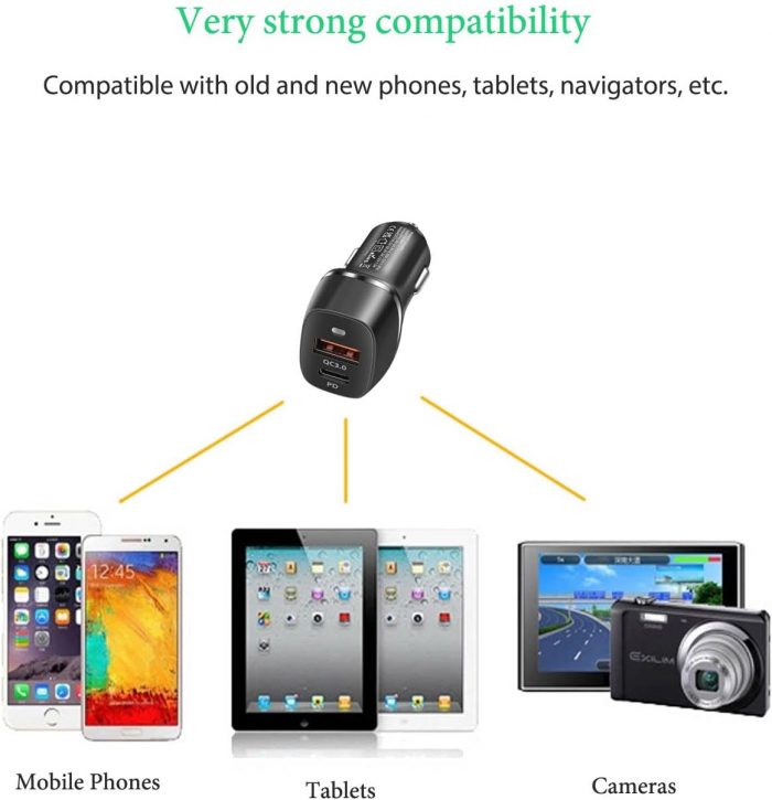 【Secure Fit】Designed to fit almost all 12V / 24V vehicle sockets and backwards compatible with Quick Charge 2.0 / 1.0 devices, compatible with most USB powered devices.