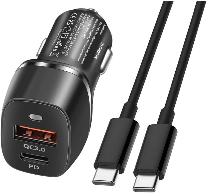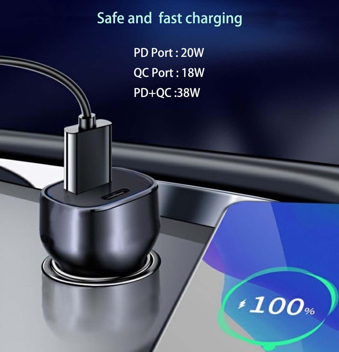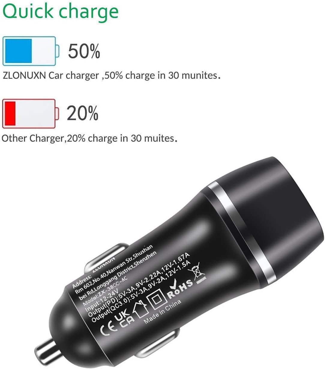 ZLONXUN USB C Car Charger 38W Compatible with Samsung Galaxy, iPhone 15, Xiaomi, Google Pixel, Huawei, Honor. and 1M Cable